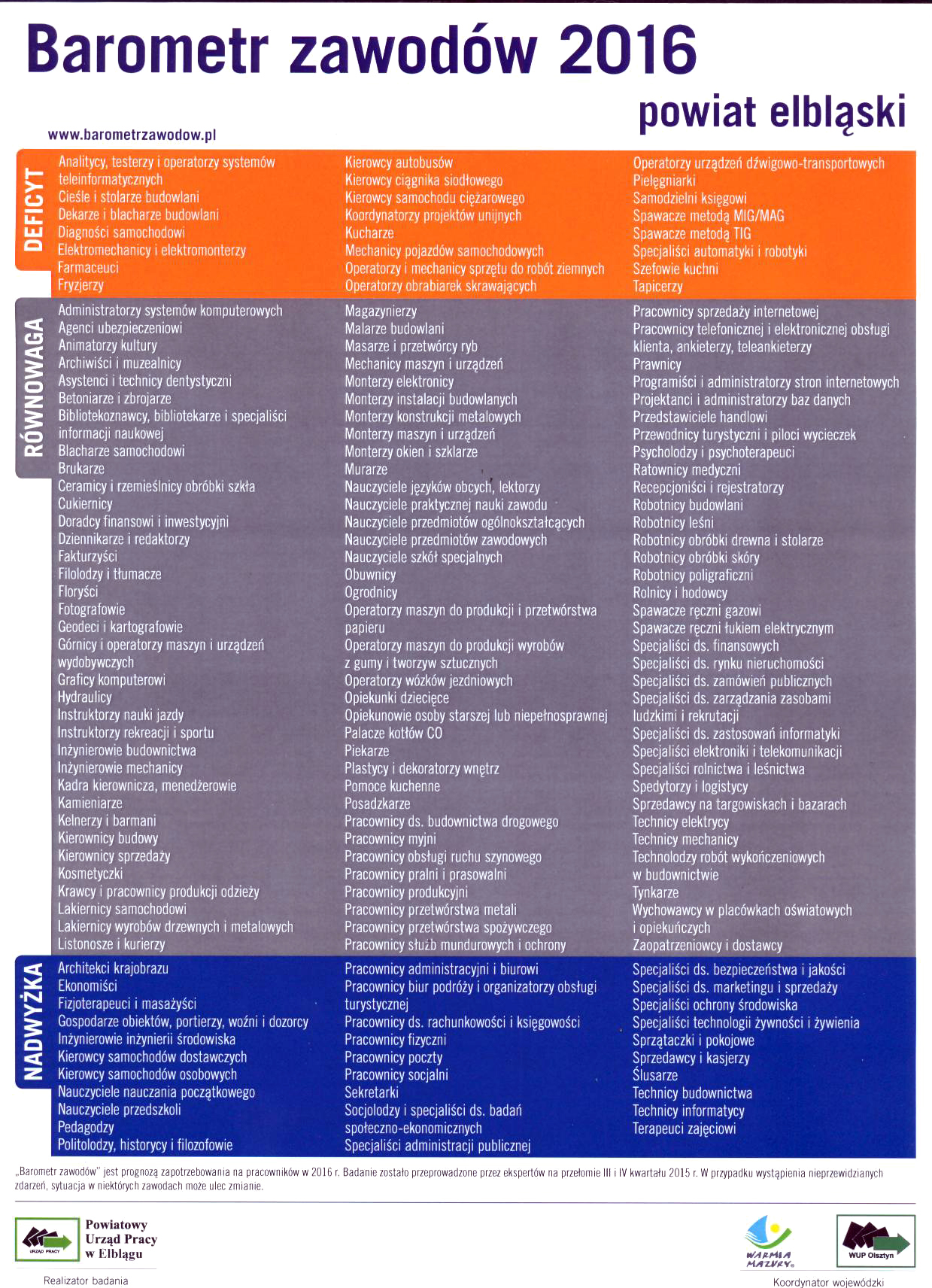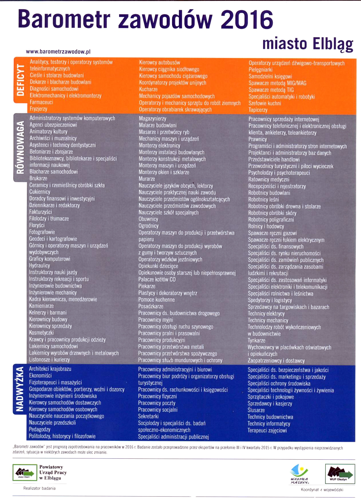 Zapraszamy do zapoznania się z Barometrem zawodów 2016 dla Elbląga.