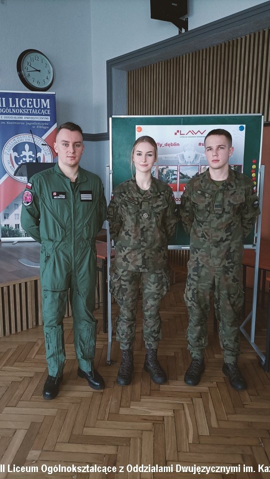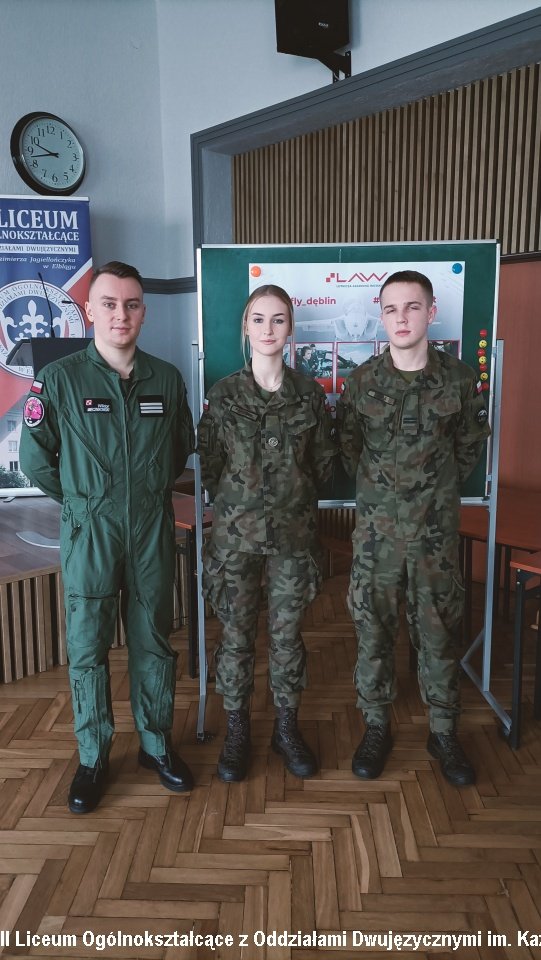 Trójka Naszych absolwentów zawitała do II LO, aby zaprezentować swoją obecną uczelnię czyli Lotniczą Akademię Wojskową w Dęblinie.