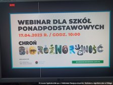Obchody Międzynarodowego Dnia Ziemi przypadającego 22. kwietnia rozpoczęliśmy już w miniony poniedziałek. Tego dnia klasy 1b, 1c, 2c i 3c wraz z nauczycielkami biologii wzięły udział w webinarze organizowanym przez Ministerstwo Klimatu i Środowiska pt. „Chroń bioróżnorodność”. Podczas spotkania panie Joanna Gadomska – biolożka w Zespole Szkół Ekonomiczno – Usługowych im. Fryderyka Chopina w Żychlinie, członkini grupy Superbelfrzy i autorka bloga Biologia z blondynką oraz dr Monika Szewczyk specjalistka ds. ochrony różnorodności biologicznej z Centrum UNEP/GRID-Warszawa przybliżyły nam zagadnienia związane z tym tematem – definicję bioróżnorodności, główne zagrożenia i sposoby jej ochrony.