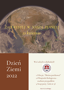 Zapraszamy do obchodów Dnia Ziemi w naszej szkole w piątek 22. kwietnia: