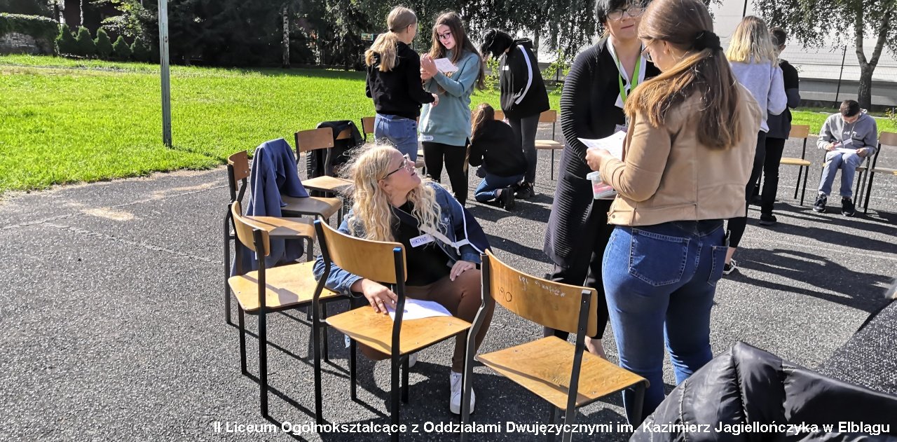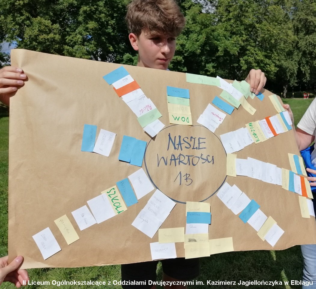 W innym zadaniu nasi pierwszoklasiści dowiedzieli się, co ich łączy, a co dzieli. Opowiedzieli również o swoich obawach i oczekiwaniach związanych z nauką w II LO. Humory dopisały. Pogoda była jeszcze wakacyjna. Teraz codzienność szkolna powinna być weselsza.
