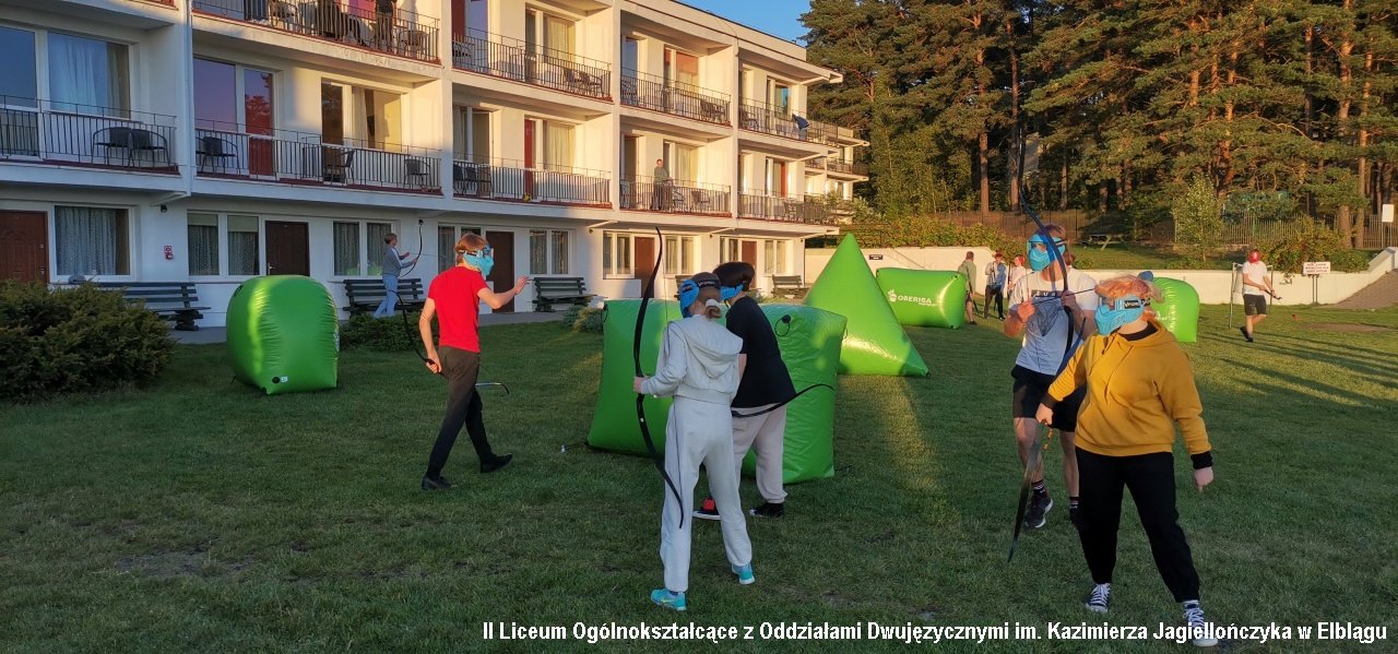 Integrację uczniów wzmacniały wspólne gry i zabawy: team building, softball, rowerki wodne, rozgrywki łucznicze ARCHERY TAG, zajęcia z tenisa i ognisko.