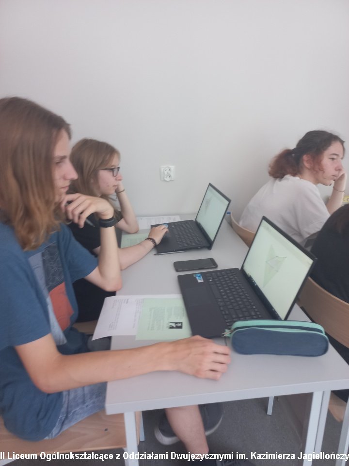 Uczniowie ponadto odkryli prostą Eulera i mogli zbadać wzajemne położenie ortocentrum, baricentrum i środka okręgu opisanego na trójkącie.