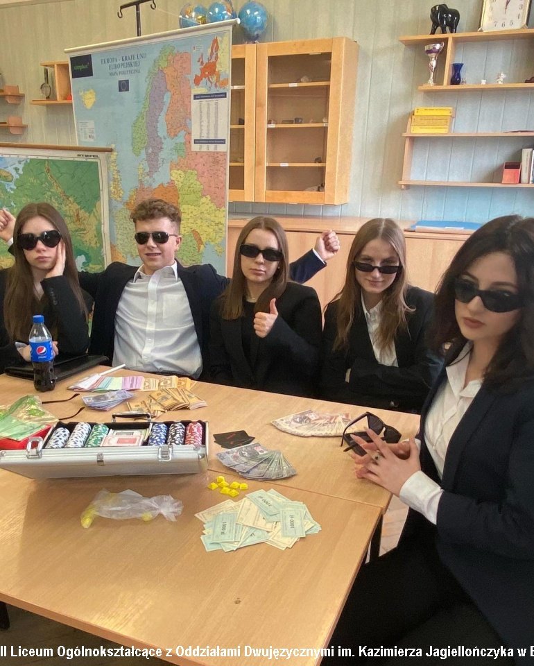 Aleksander dołączył do naszej klasy po pierwszym roku nauki w liceum, przenosząc się z profilu matematyczno-fizycznego. Chociaż nie był z nami od początku, od razu naturalnie stał się częścią zespołu, niesamowicie zżył się ze wszystkimi.