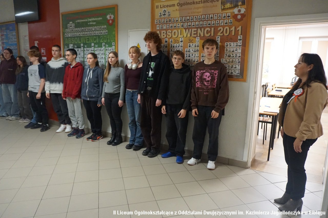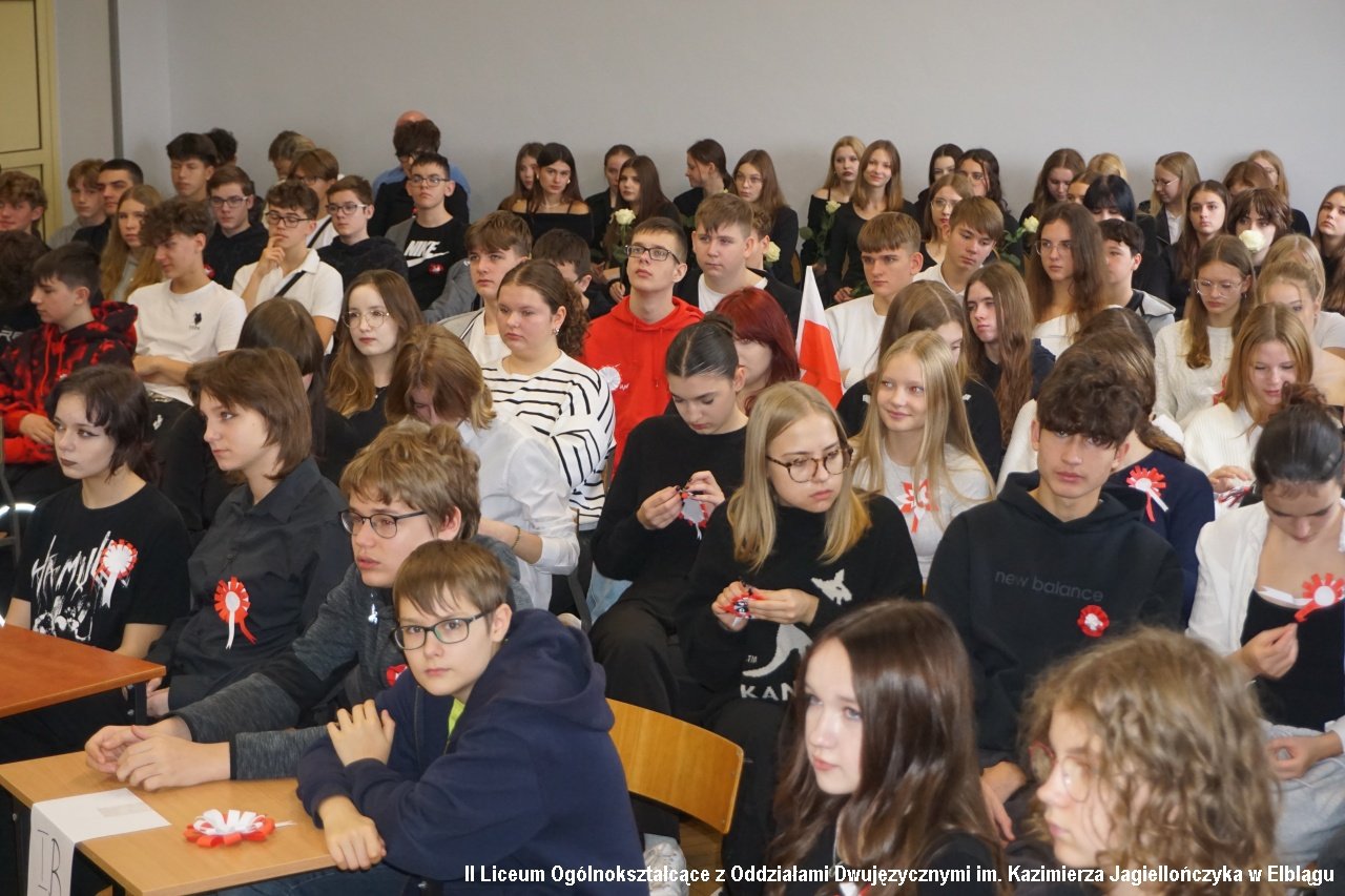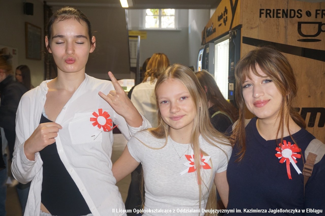Biało-czerwone akcenty pojawiły się na korytarzach szkoły. Wręczaliśmy uczniom własnoręcznie wykonane kotyliony, aby przyozdobili się nimi. Z okazji Święta Niepodległości zorganizowany został szkolny turniej wiedzy historycznej. O godzinie 11.11 z radiowęzła szkolnego rozległ się hymn narodowy, który uczniowie odśpiewali w poszczególnych klasach. Ojczyzno- to dla ciebie!