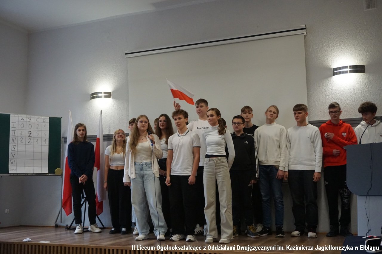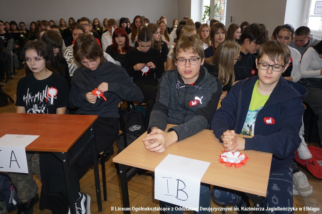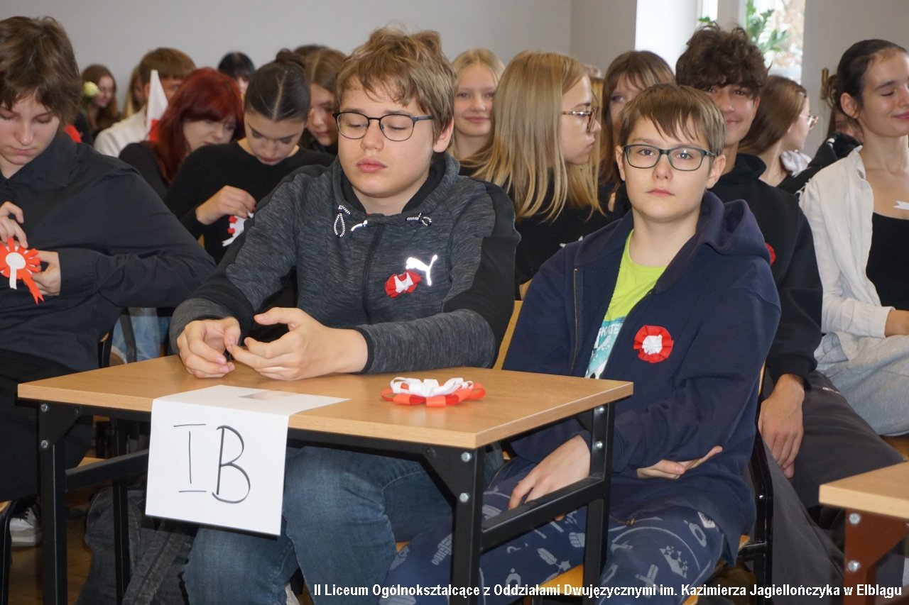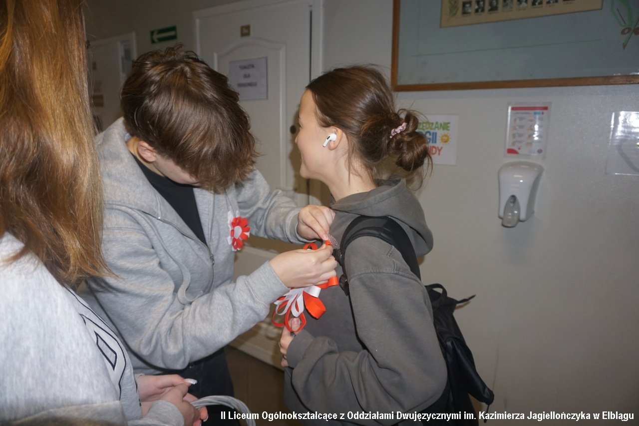 Biało-czerwone akcenty pojawiły się na korytarzach szkoły. Wręczaliśmy uczniom własnoręcznie wykonane kotyliony, aby przyozdobili się nimi. Z okazji Święta Niepodległości zorganizowany został szkolny turniej wiedzy historycznej. O godzinie 11.11 z radiowęzła szkolnego rozległ się hymn narodowy, który uczniowie odśpiewali w poszczególnych klasach. Ojczyzno- to dla ciebie!