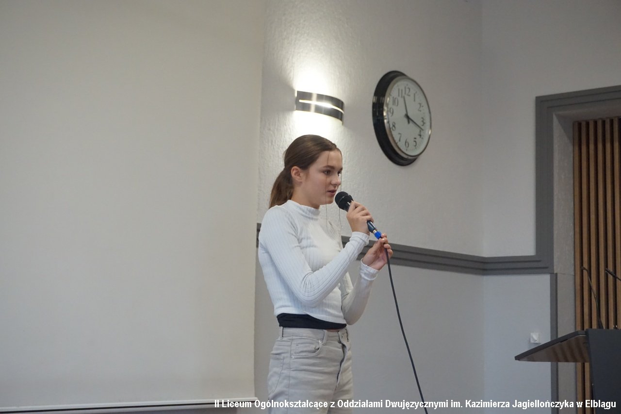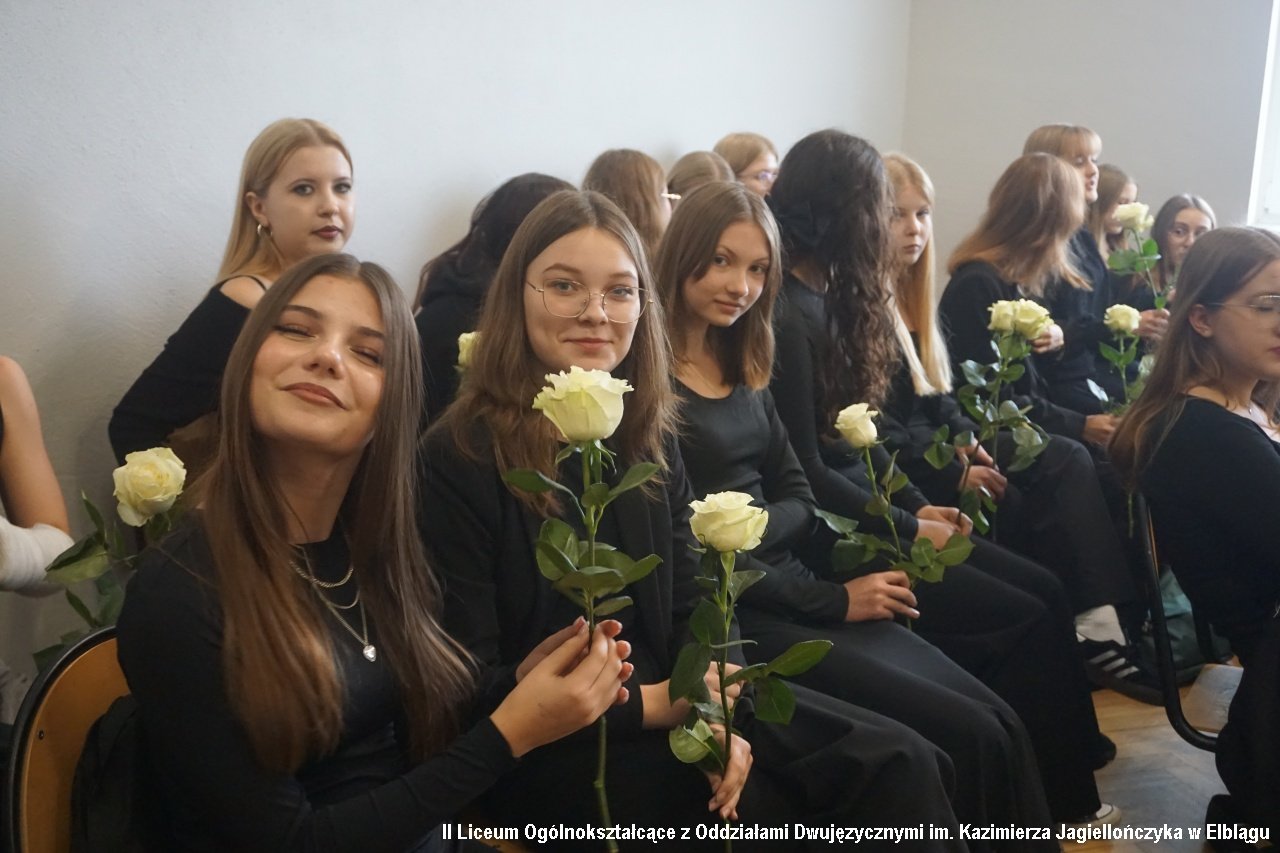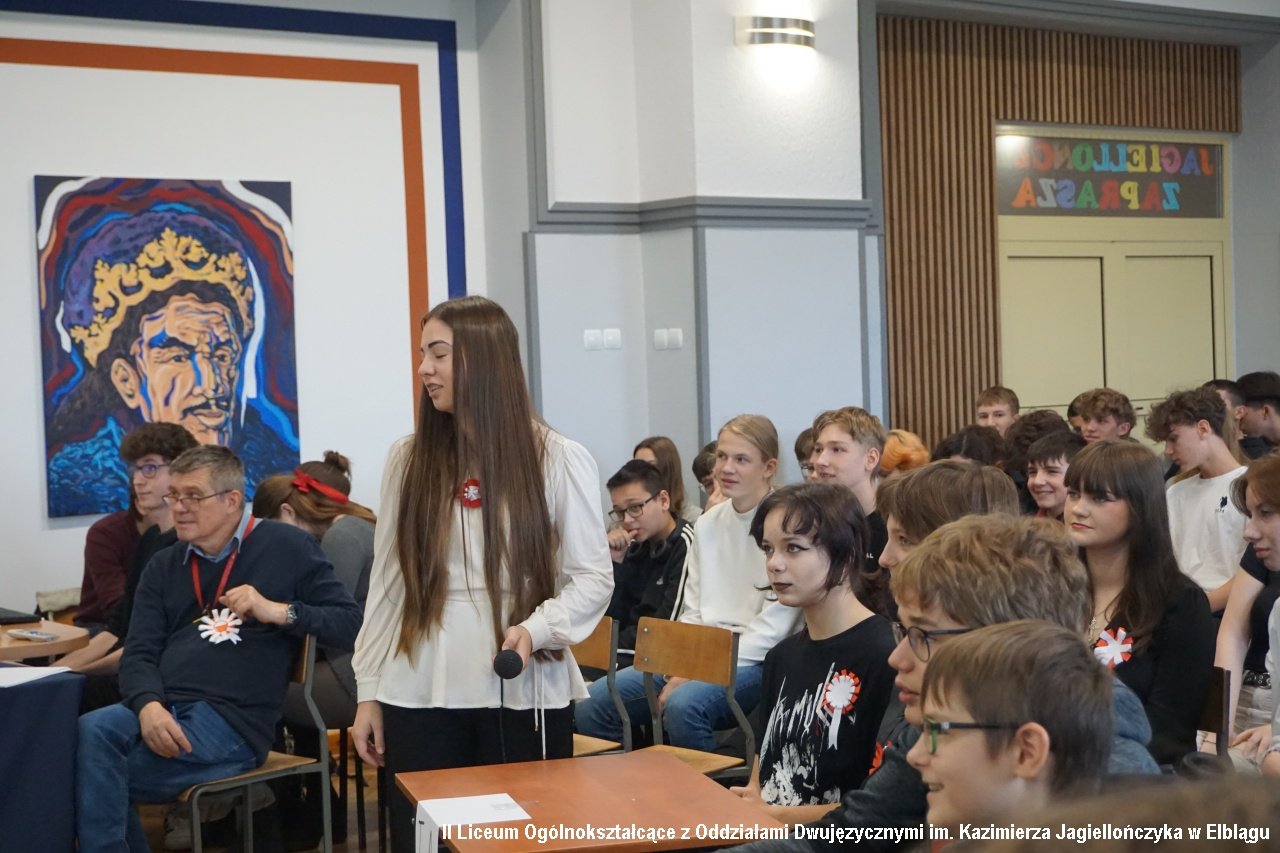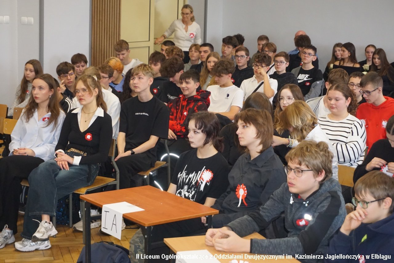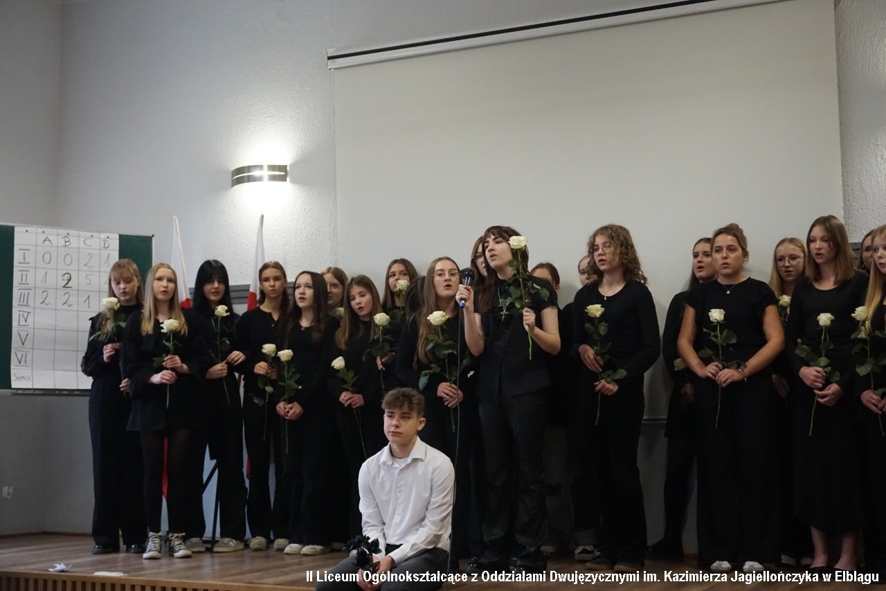 Jak co roku włączyliśmy się też w miejskie obchody święta. Poczet sztandarowy reprezentował II LO w uroczystej mszy św. w Katedrze św. Mikołaja, po której poczty przeszły przez starówkę pod Pomnik Twórców Niepodległości, gdzie odegrano hymn narodowy Mazurek Dąbrowskiego.