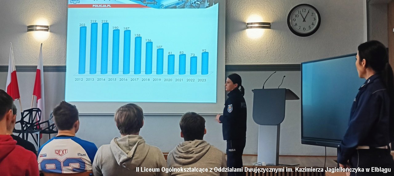 19 i 26 listopada odbyły się spotkania klas maturalnych z funkcjonariuszkami Wydziału Ruchu Drogowego Komendy Miejskiej Policji w Elblągu, asp.szt. Agnieszką Kudosz i asp. Natalią Karpińską. Maturzyści mieli okazję porozmawiać na temat bezpiecznego poruszania się po drodze, zarówno jako pieszy, jak i kierowcy. Posiadacze Prawa Jazdy, a także obecni kursanci mogli zapoznać się z zagrożeniami czyhającymi na młodych kierowców nie tylko na ulicach naszego miasta. Szczególną uwagę funkcjonariuszki zwróciły na popełnianie wykroczeń drogowych, konsekwencje jazdy pod wpływem alkoholu lub innych środków psychoaktywnych. Mamy nadzieję, że zajęcia wpłyną pozytywnie nie tylko na kierowców, ale także ich pasażerów oraz pieszych.
