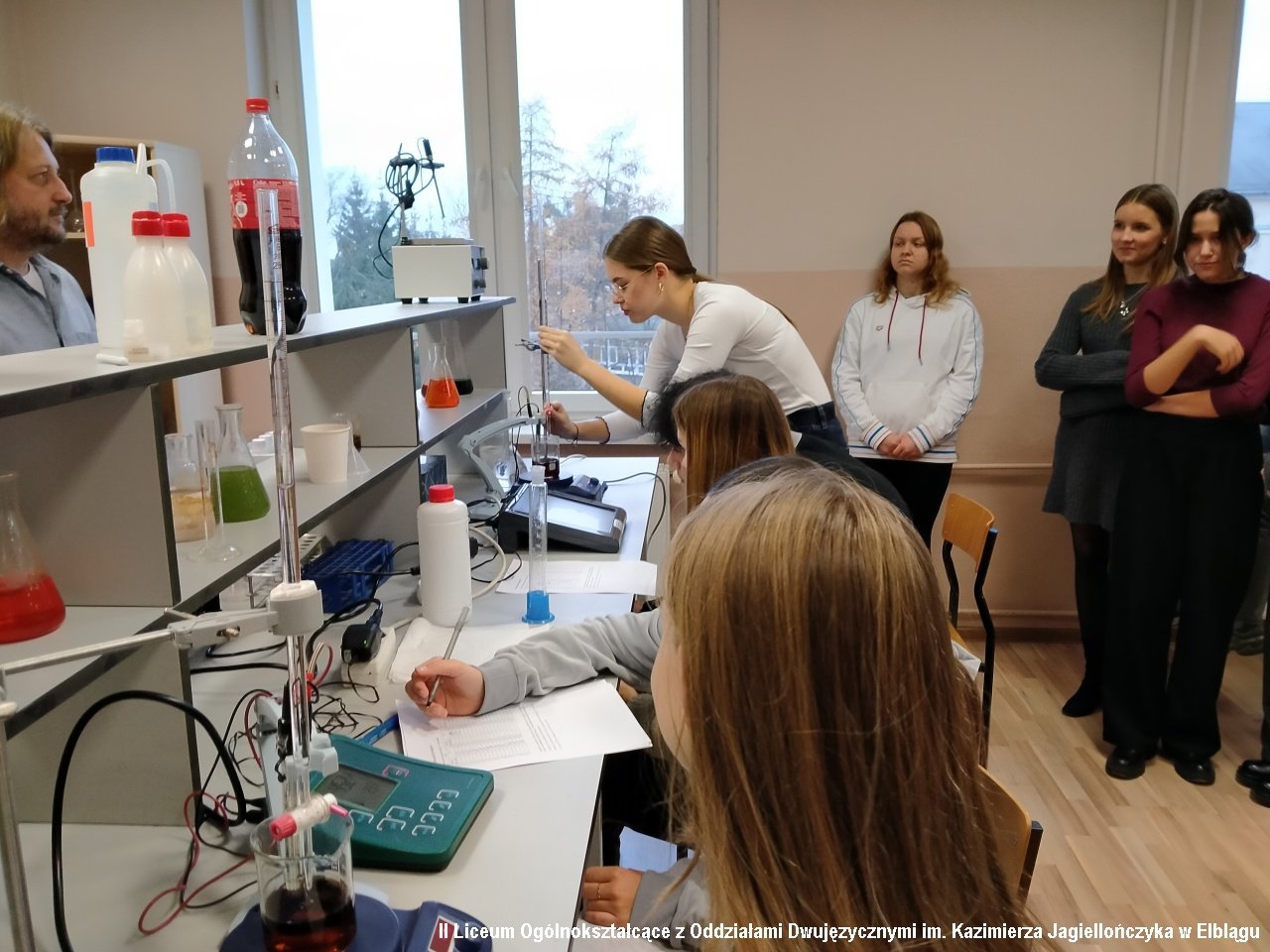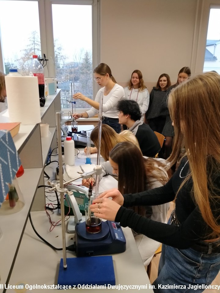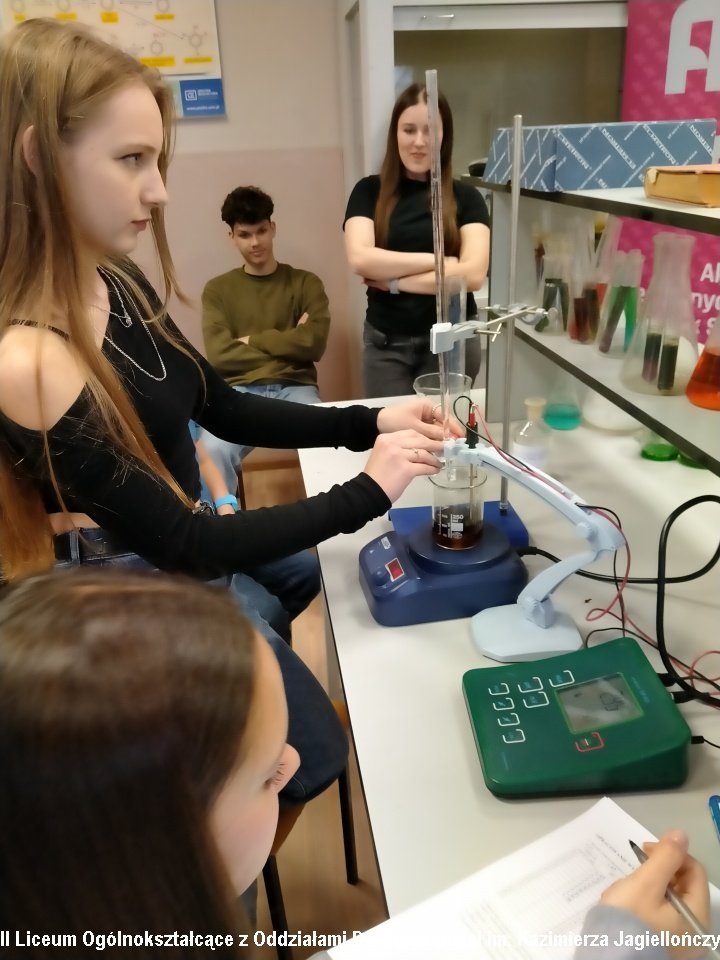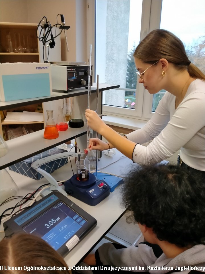 Uczniowie klasy 3c mieli okazję zgłębić tajniki analizy chemicznej poprzez pH -metryczne miareczkowanie Coca-Coli. Zajęcia pt. "Równowaga-kwasowo-zasadowa -pokazy chemiczne" były doskonałą okazją do zapoznania się z jedną z podstawowych technik analitycznych stosowanych w chemii. Warsztaty prowadzili dr inż. Wojciech Chwiałkowski (AMiSNS) oraz Maciej Malczyk – nauczyciel chemii w IILO , którzy w przystępny i inspirujący sposób przybliżyli uczniom praktyczne aspekty miareczkowania oraz znaczenie tej metody w badaniach chemicznych. Uczniowie mieli okazję samodzielnie przeprowadzić ciekawe eksperymenty.