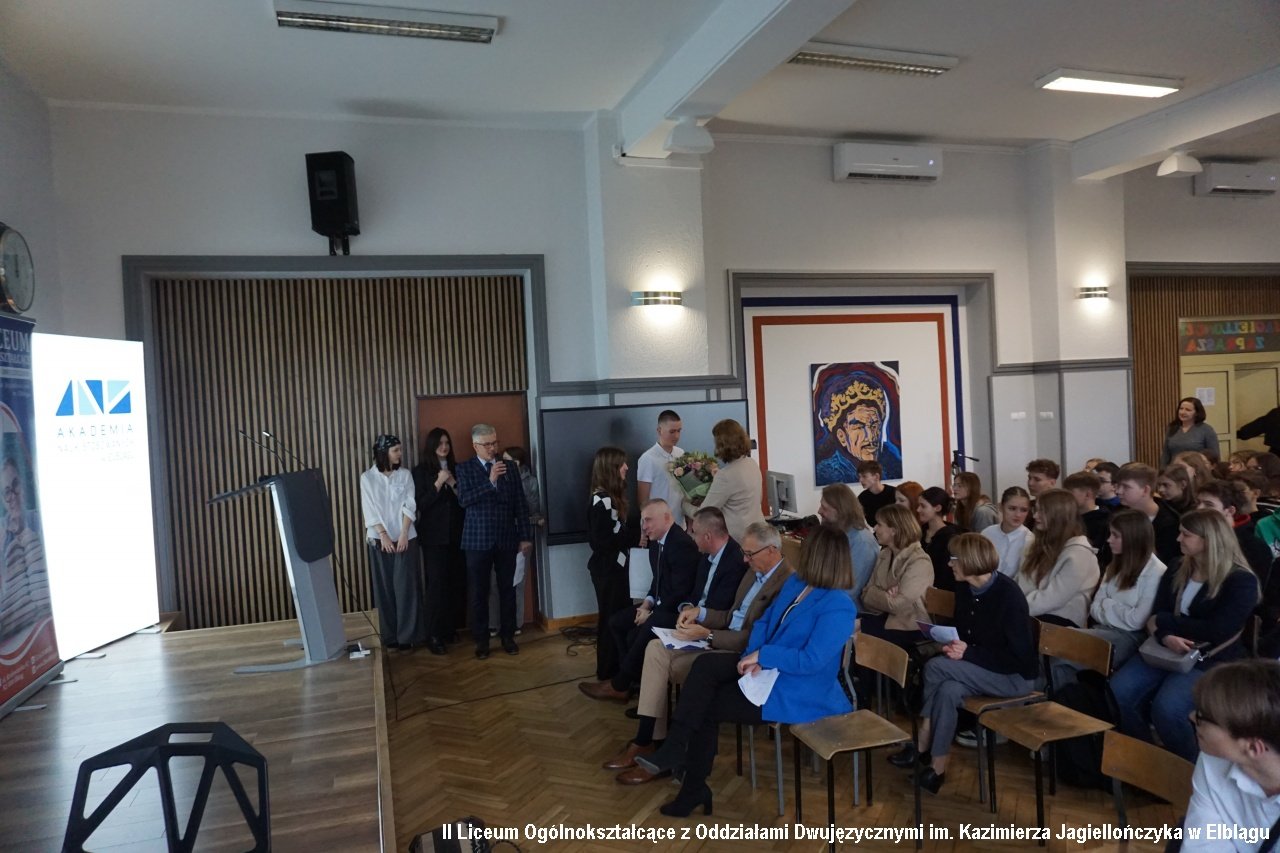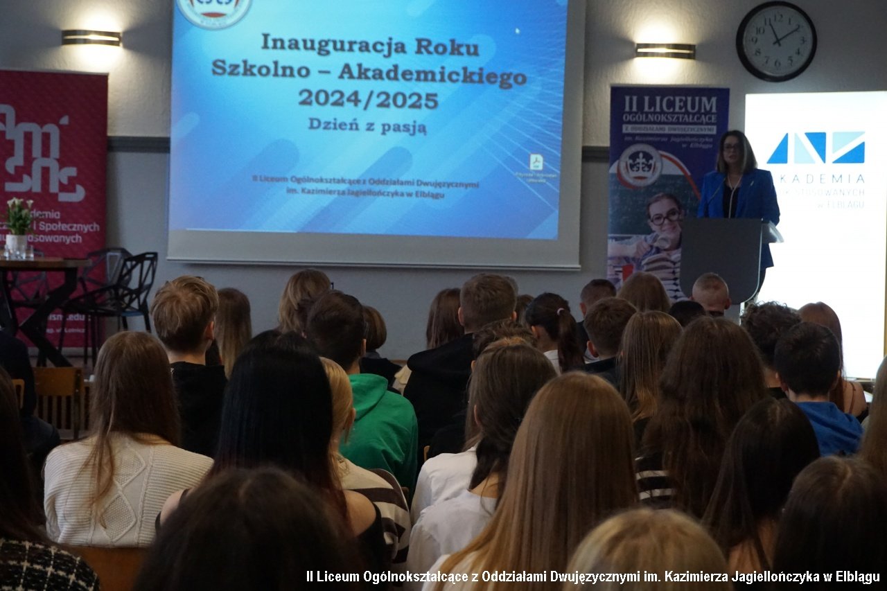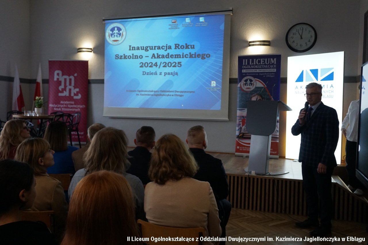 27 listopada 2024r. w naszym liceum odbyło się ważne wydarzenie w kalendarzu roku szkolnego naszego liceum. Ważne, bo niepodważalny jest w nim nie tylko aspekt edukacyjny, ale również w kwestii współpracy z znaczącymi ośrodkami naukowymi w rejonie. Inauguracja Roku Szkolno-Akademickiego 2024/2025 – to impreza, podczas której gościliśmy znakomitości i pasjonatów z różnych dziedzin wiedzy. To impreza kształtująca kolejne miesiące naszej nauki, inicjująca różnorakie spotkania, wykłady, warsztaty, lekcje i projekty w nadchodzących miesiącach. I nic w tym dziwnego, bowiem to wydarzenie inauguracyjne jest również tzw.” Dniem z Pasją”. Tam, gdzie jest pasja, dzieją się wielkie rzeczy. Motywem przewodnim tegorocznego "Dnia z Pasją" było motto "Odnajdź z nami balans". Gości przywitała i oficjalnie rozpoczęła Dzień z Pasją pani Agnieszka Jurewicz –dyrektor II LO.