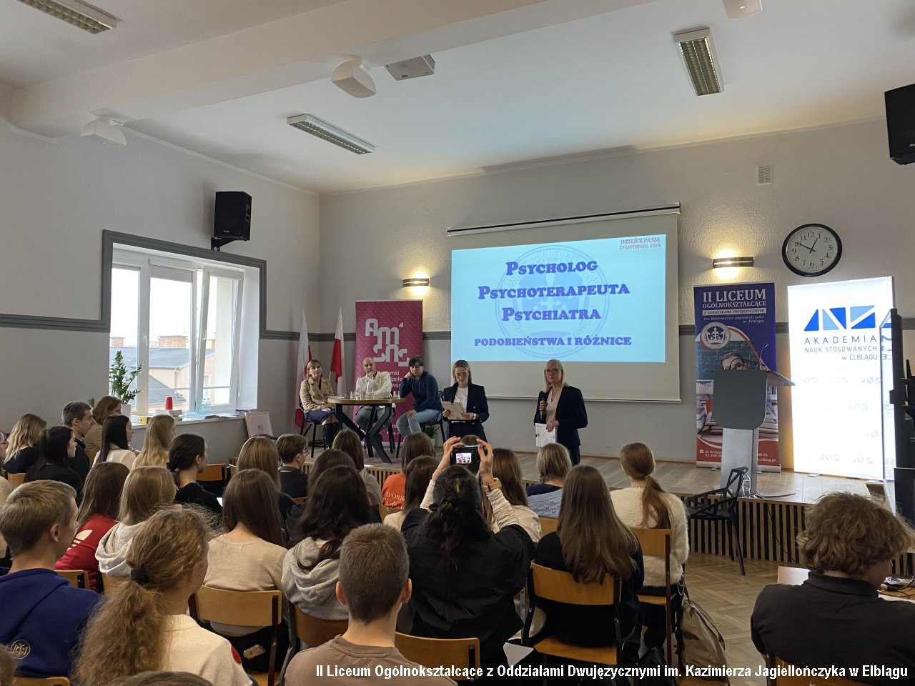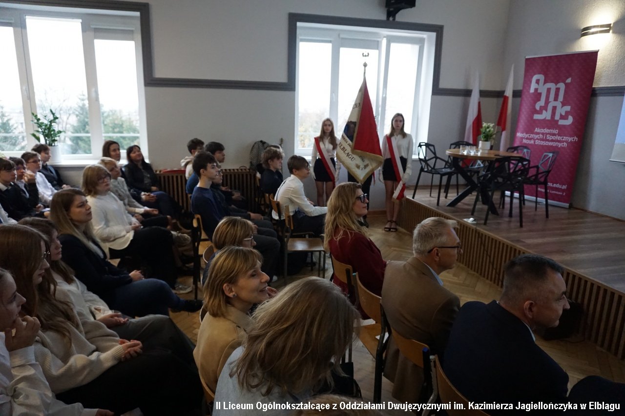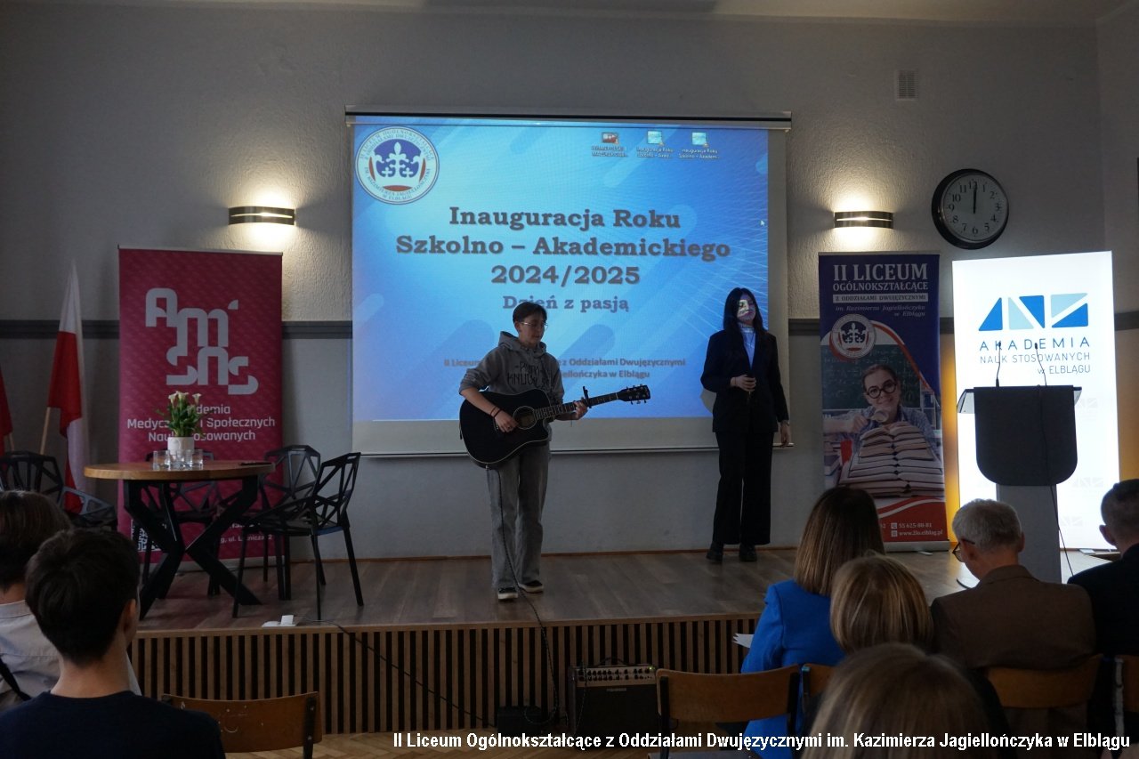 27 listopada 2024r. w naszym liceum odbyło się ważne wydarzenie w kalendarzu roku szkolnego naszego liceum. Ważne, bo niepodważalny jest w nim nie tylko aspekt edukacyjny, ale również w kwestii współpracy z znaczącymi ośrodkami naukowymi w rejonie. Inauguracja Roku Szkolno-Akademickiego 2024/2025 – to impreza, podczas której gościliśmy znakomitości i pasjonatów z różnych dziedzin wiedzy. To impreza kształtująca kolejne miesiące naszej nauki, inicjująca różnorakie spotkania, wykłady, warsztaty, lekcje i projekty w nadchodzących miesiącach. I nic w tym dziwnego, bowiem to wydarzenie inauguracyjne jest również tzw.” Dniem z Pasją”. Tam, gdzie jest pasja, dzieją się wielkie rzeczy. Motywem przewodnim tegorocznego "Dnia z Pasją" było motto "Odnajdź z nami balans". Gości przywitała i oficjalnie rozpoczęła Dzień z Pasją pani Agnieszka Jurewicz –dyrektor II LO.