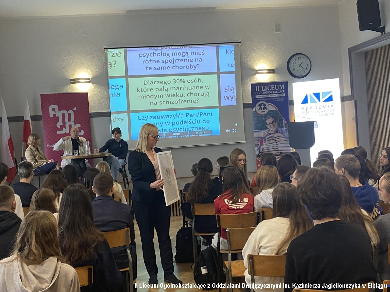 Na pytanie „Emocje – wróg czy przyjaciel?” odpowiadała Joanna Gawlicka z Akademii Medycznych i Społecznych Nauk Stosowanych. W spotkaniu udział wzięły klasy 2g psychologiczna oraz 3d biznesowa.