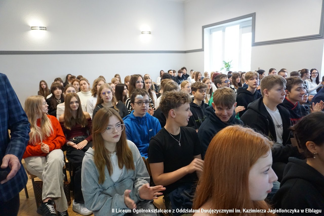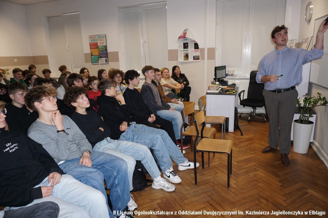 Marek Nawrocki -sędzia Sądu Okręgowego w Elblągu- spotkał się z klasami humanistycznymi 2a i 3a aby poruszyć temat "Czy można być sędzią karnistą równocześnie pozostając człowiekiem?"