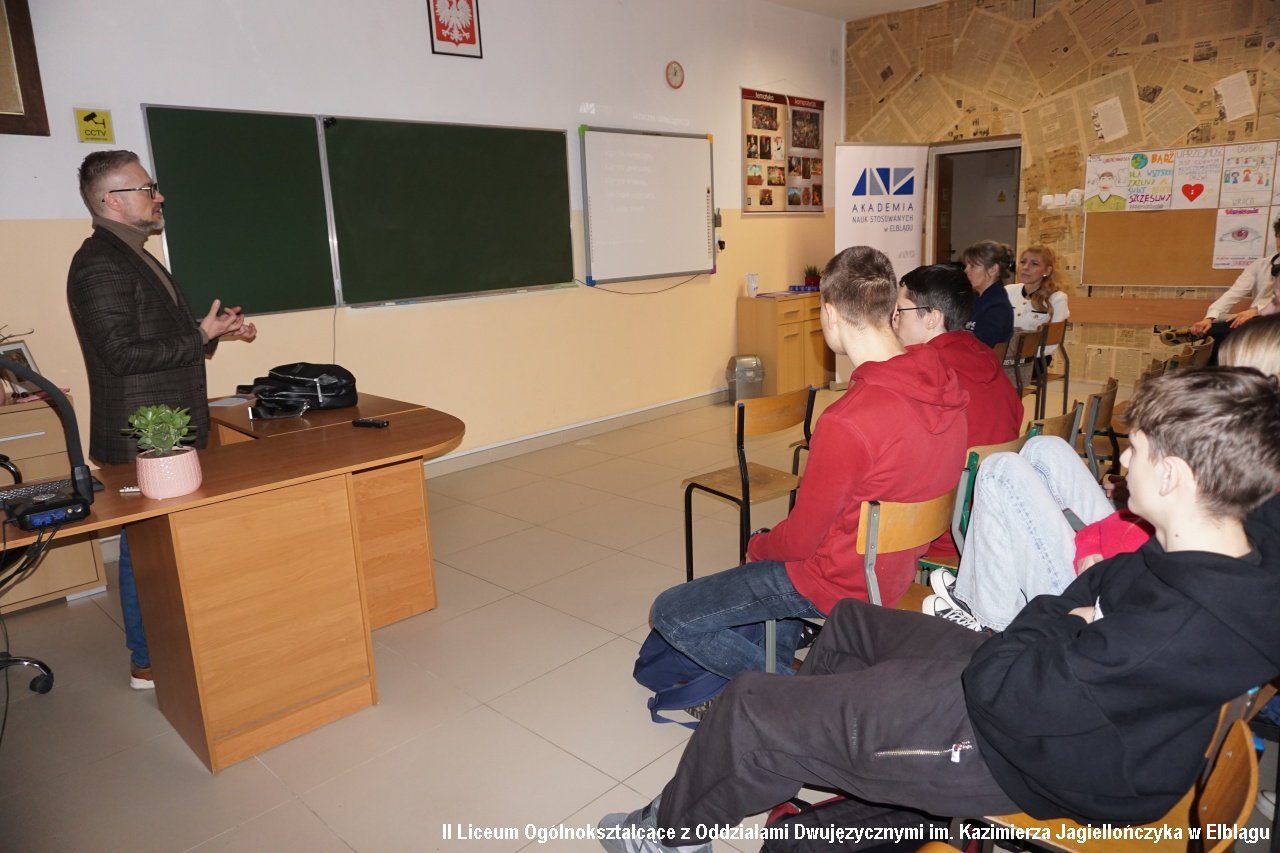 dr inż. Jacek Paluszak (ANS) spotkał się z klasami: matematyczno-fizyczną 3f i matematyczno-geograficzną 3e, którym wyłożył aktualny problem społeczny, naukowy, mający konsekwencje w jakości życia cywilizacyjnego w niedalekiej przyszłości, czyli o "Sztucznej inteligencji".