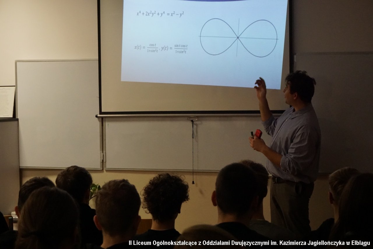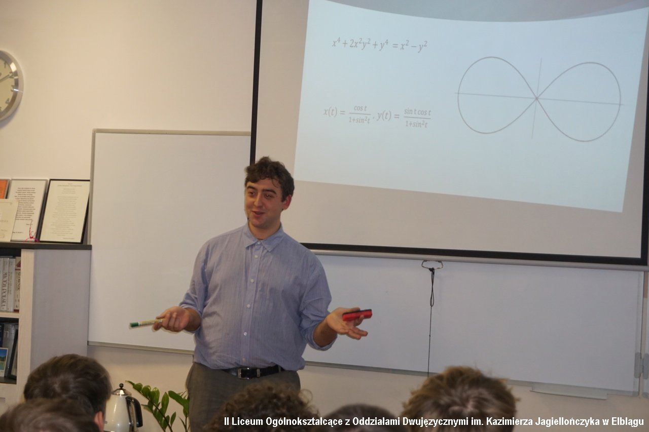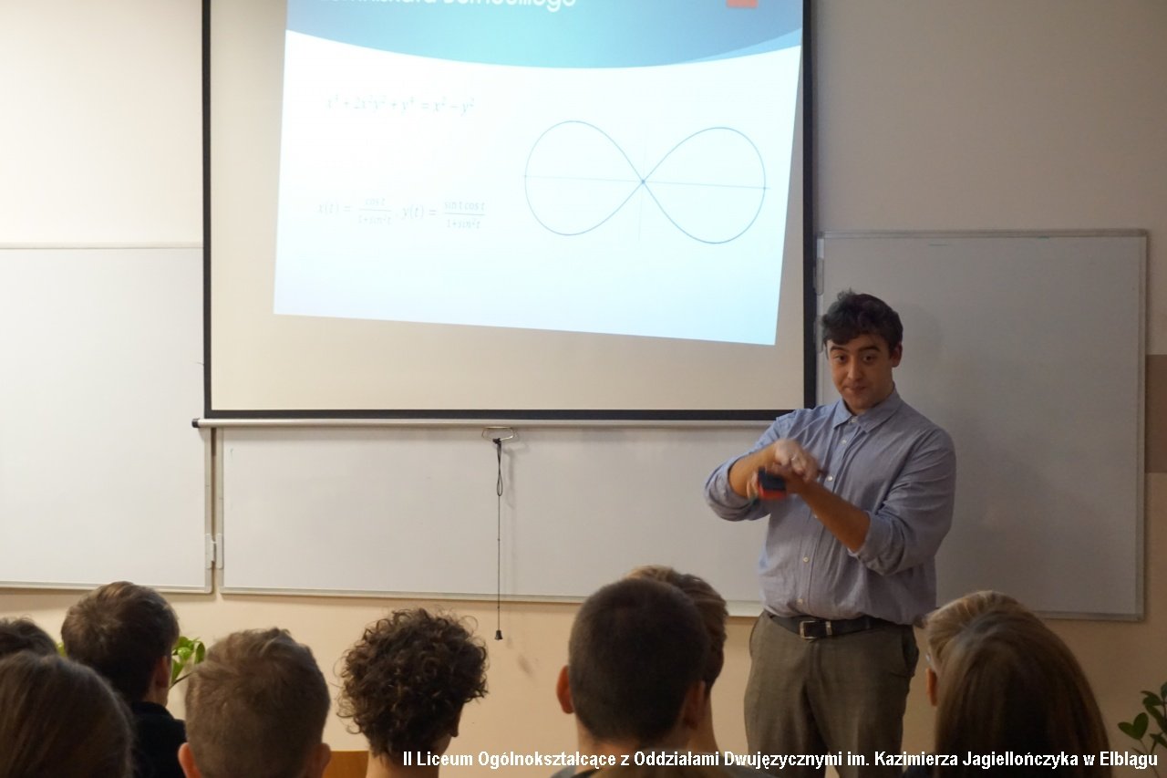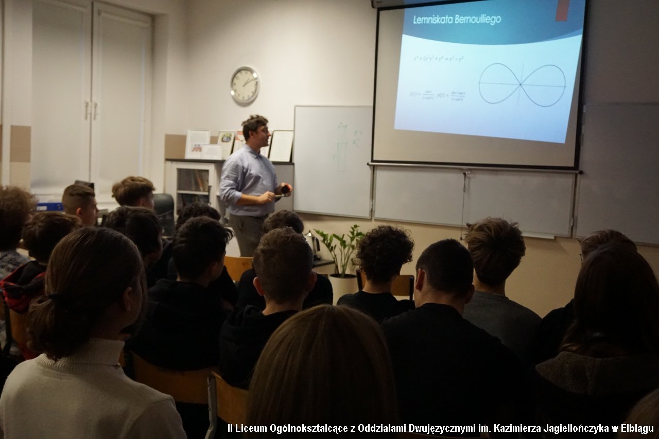 W programie zajęć w ramach Dnia z Pasją nie mogłoby zabraknąć królowej nauk – matematyki. O „Osobliwym obliczu geometrii” – wykładał absolwent naszego liceum - Maksymilian Safarewicz z Politechniki Warszawskiej