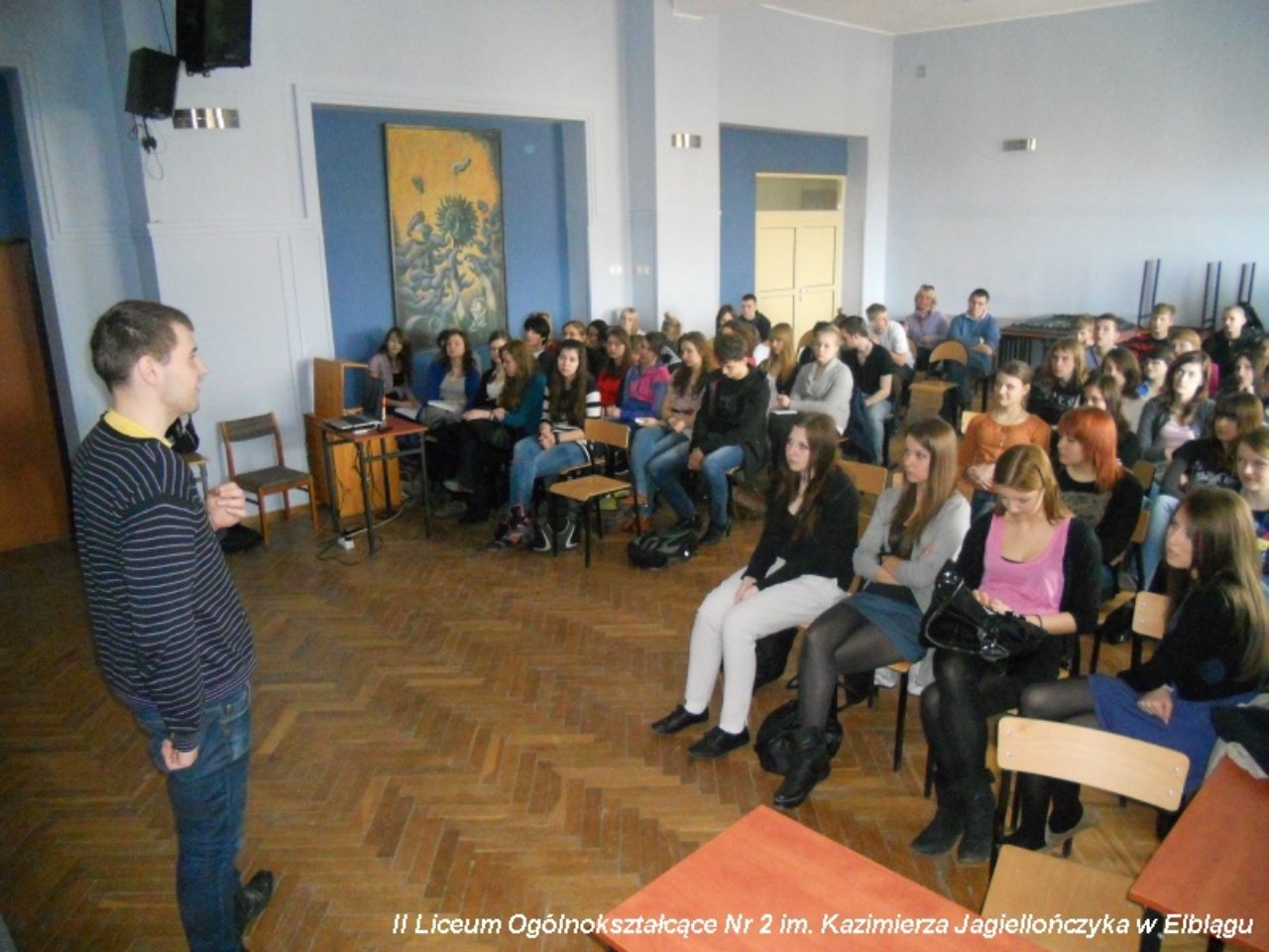 Gimnazjaliści mogli poznać ofertę edukacyjną II LO, obejrzeć komediowe przedstawienie szkolne pt. „Łopata elbląskiego piekarczyka", wziąć udział w zajęciach i doświadczeniach, grach logicznych i quizach. Ważnym elementem zwiedzania szkoły była bezpośrednia rozmowa z przedstawicielami różnych klas.