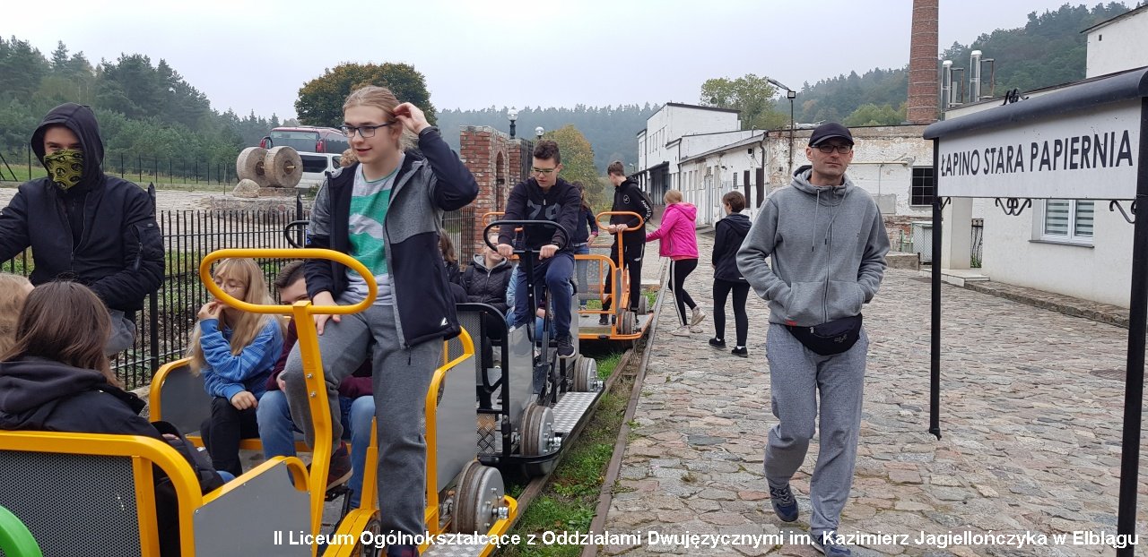 Na ostatni dzień biwaku zaplanowana została piesza godzinna wycieczka lasem do nieczynnej stacji kolejowe Łapino Stara Papiernia, gdzie czekała nas przejażdżka drezynami. Pokonaliśmy 4 km jak z procy. Droga powrotna nie była już taka łatwa. Okazało się, że trasa prowadzi pod górę, a różnica poziomu wynosi 14m. Daliśmy radę!