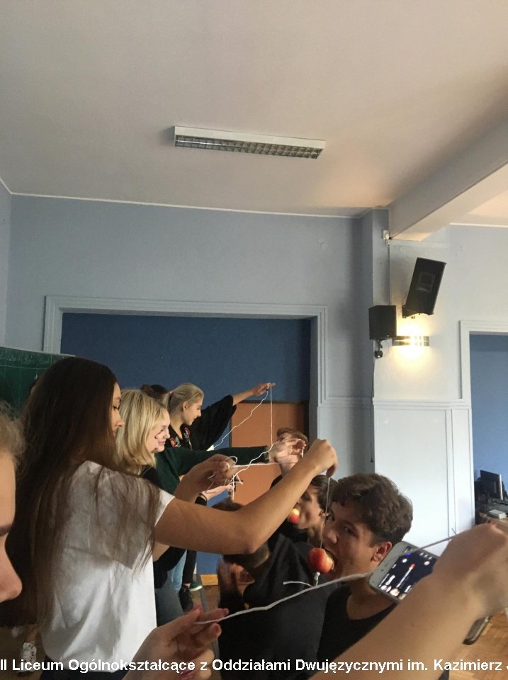 Dziewczyny z 1B postanowiły zaskoczyć swoich klasowych chłopaków i zorganizowały niespodziankę w postaci konkursu - było jedzenie ptysiów na czas, gryzienie jabłek na sznurku, zagryzanie pikantnych papryczek i dość wymagający quiz ------- panowie dali radę a w nagrodę zjedli po smacznej pizzy którą, jako prawdziwi gentlemani, podzielili się z dziewczynami i ze mną - thanks :)