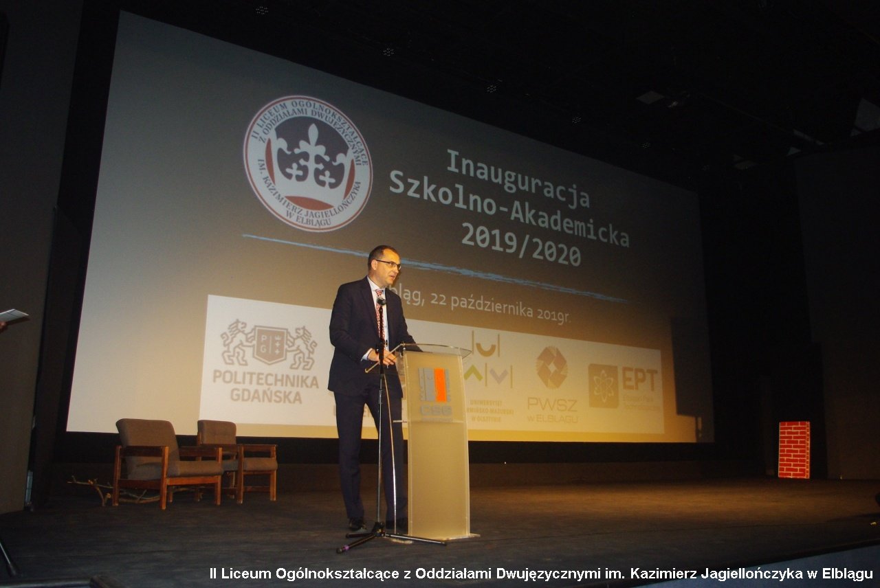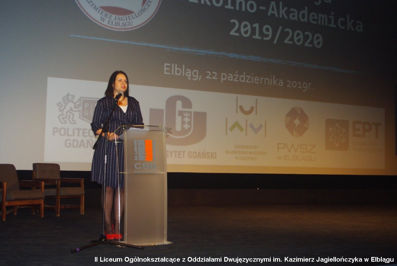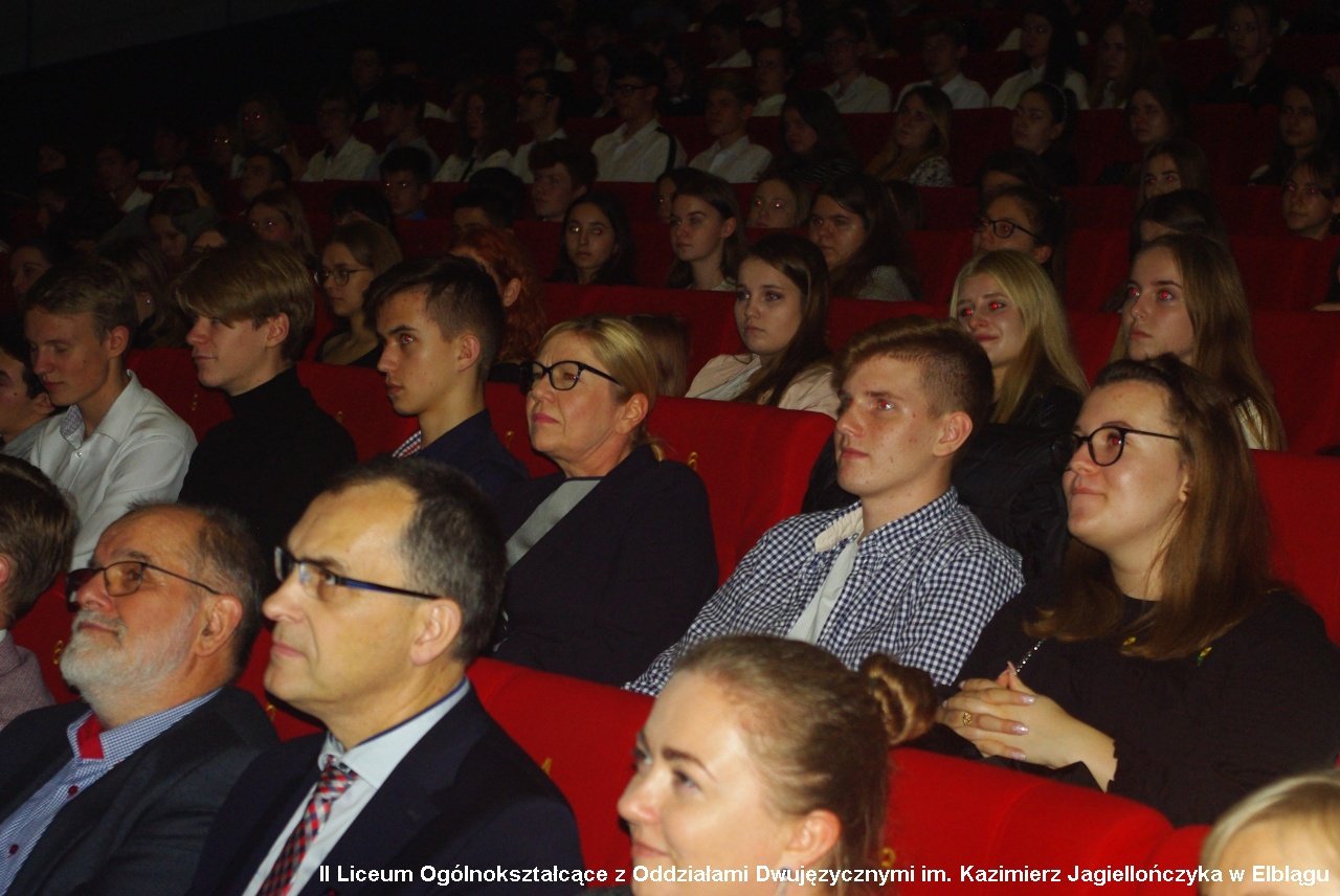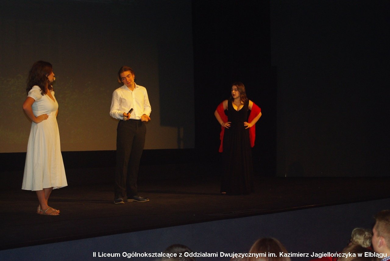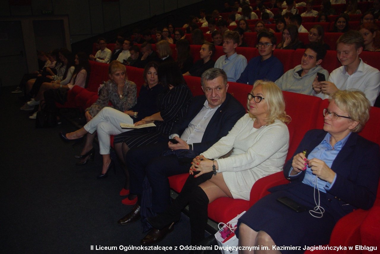 Galę rozpoczął występ wokalny uczennicy Michaliny Józefowicz z kl.Ib, po nim przemówienie pani Agnieszki Jurewicz – dyrektor II Liceum Ogólnokształcącego z Oddziałami Dwujęzycznymi. Następnie ciepłe słowa skierowali do nas zaproszeni goście: pan Edward Pietrulewicz – wiceprezydent miasta Elbląg, pani Małgorzata Sowicka- dyrektor Departamentu Edukacji, przedstawiciele uczelni dr inż. Igor Garnik, prodziekan Wydziału Zarządzania i Ekonomii PG, dr Tomasz Wierzejski prodziekan Wydziału Nauk Ekonomicznych UWM. Usłyszeliśmy słowa pochwały, za to co robimy i jak robimy. Było nam wybornie i miło.