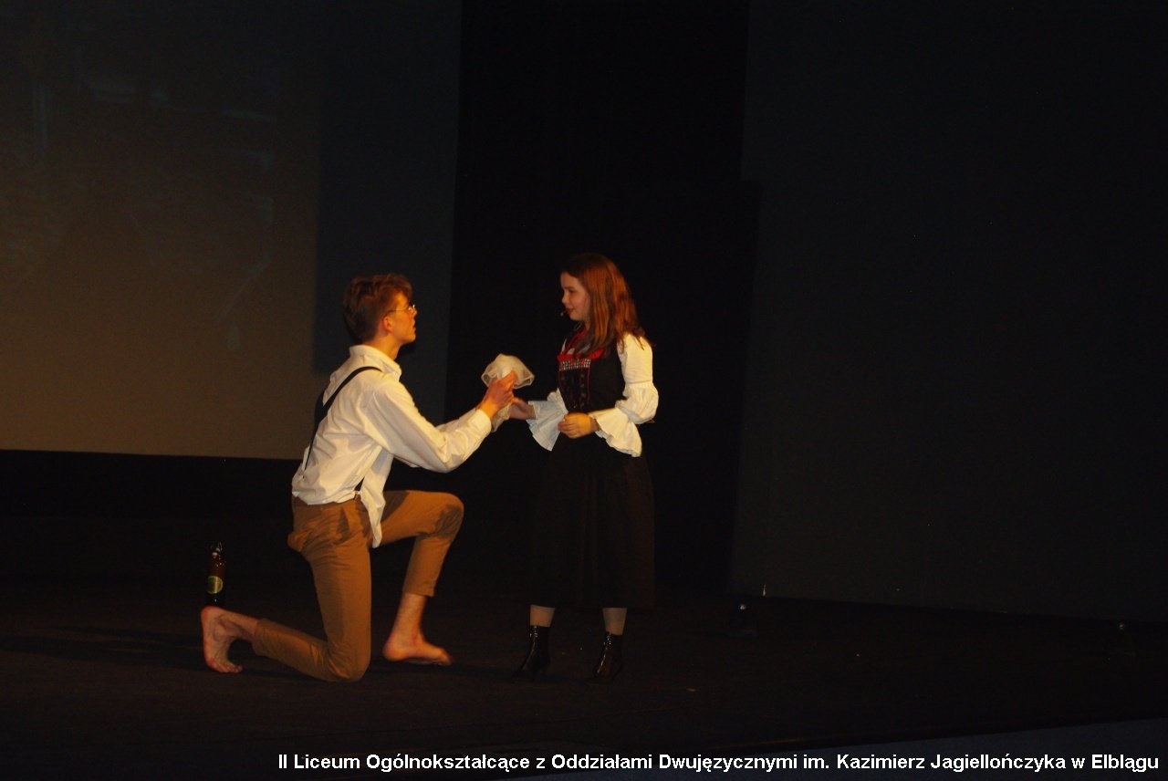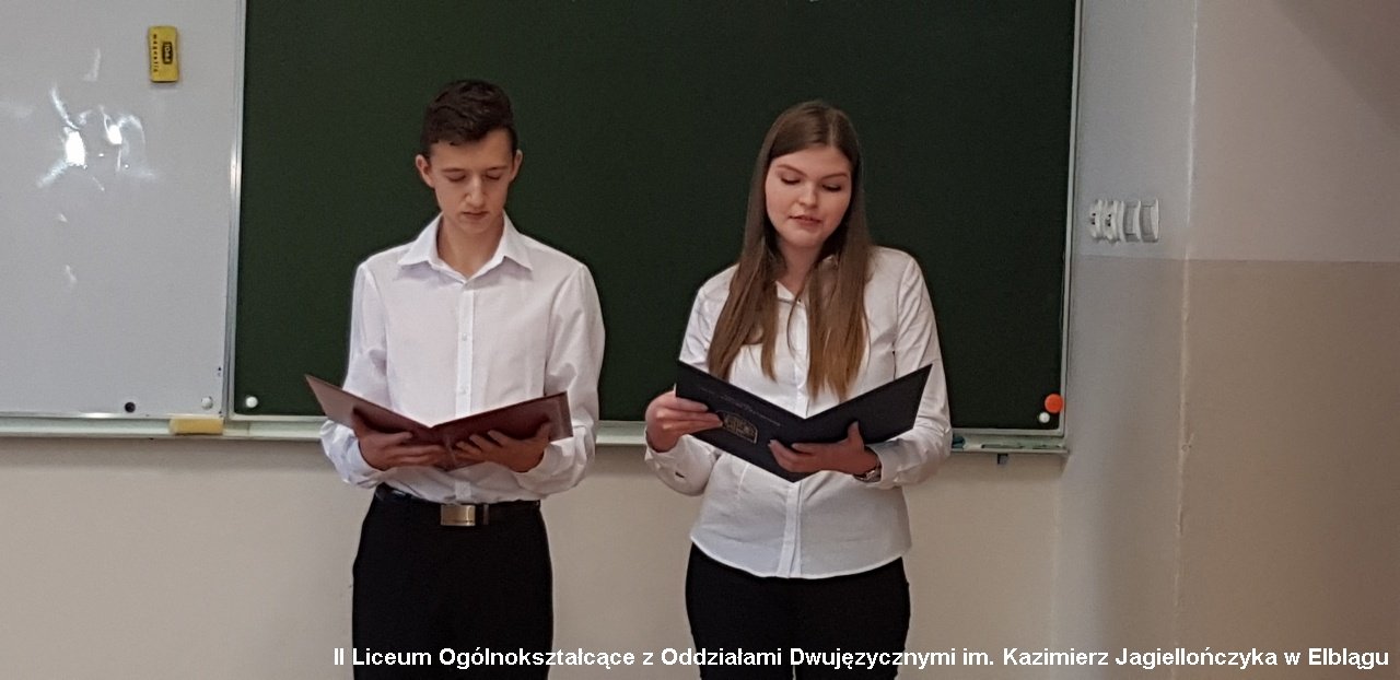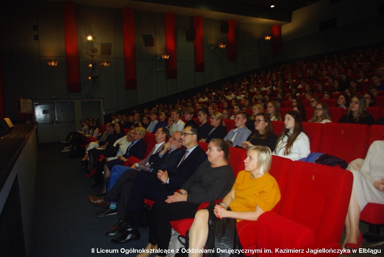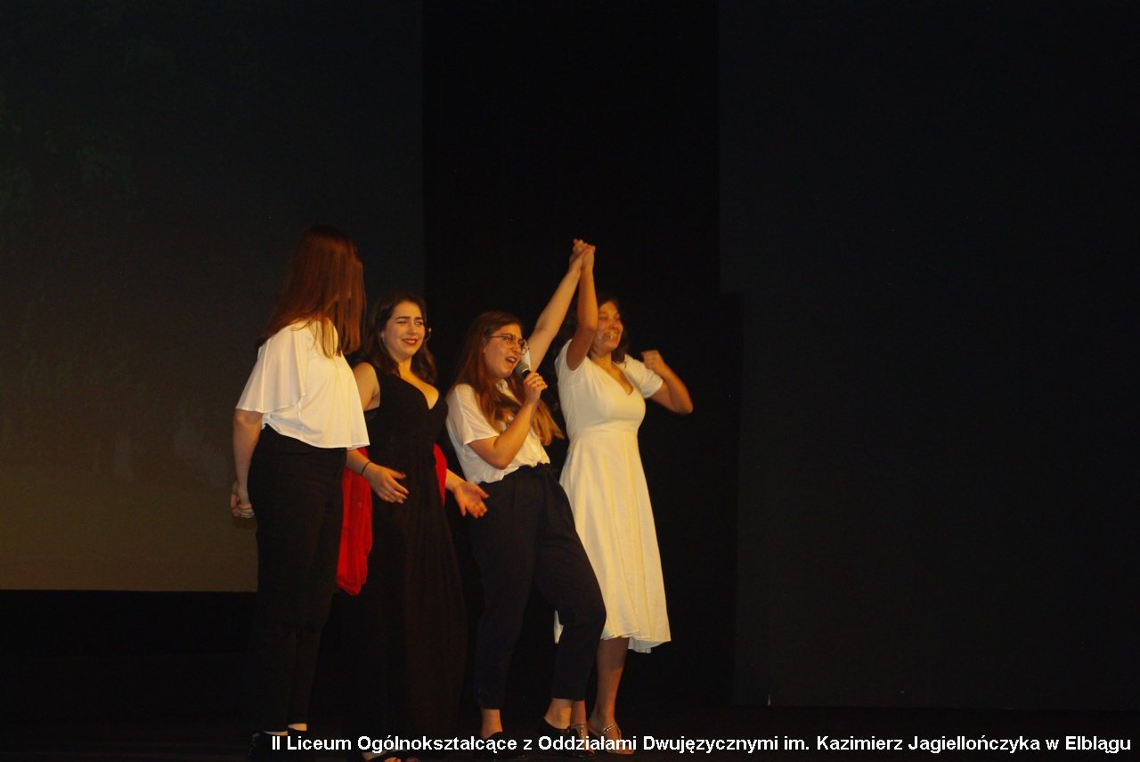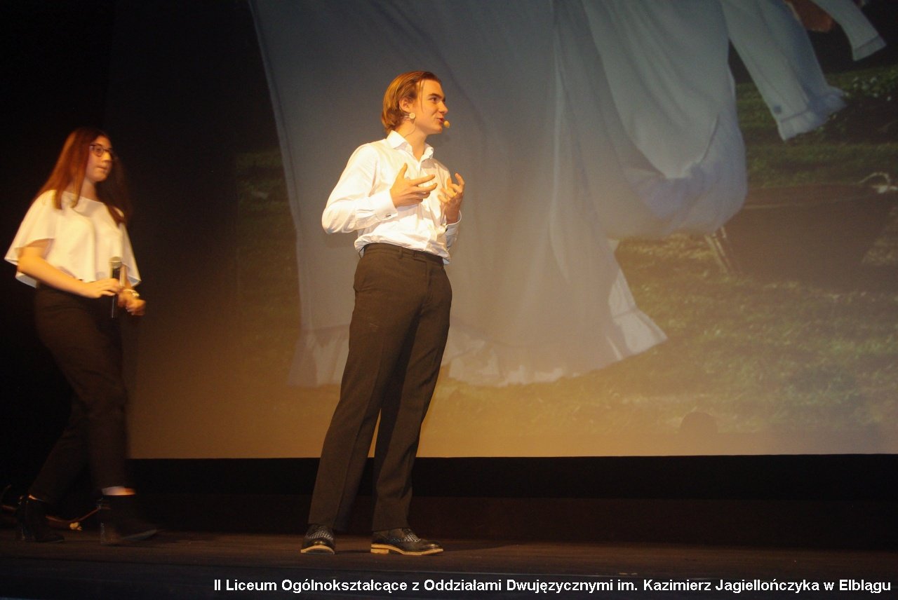 Galę rozpoczął występ wokalny uczennicy Michaliny Józefowicz z kl.Ib, po nim przemówienie pani Agnieszki Jurewicz – dyrektor II Liceum Ogólnokształcącego z Oddziałami Dwujęzycznymi. Następnie ciepłe słowa skierowali do nas zaproszeni goście: pan Edward Pietrulewicz – wiceprezydent miasta Elbląg, pani Małgorzata Sowicka- dyrektor Departamentu Edukacji, przedstawiciele uczelni dr inż. Igor Garnik, prodziekan Wydziału Zarządzania i Ekonomii PG, dr Tomasz Wierzejski prodziekan Wydziału Nauk Ekonomicznych UWM. Usłyszeliśmy słowa pochwały, za to co robimy i jak robimy. Było nam wybornie i miło.