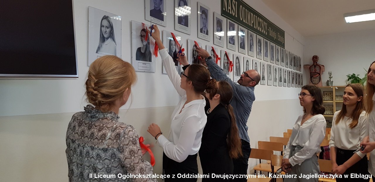 W sali nr 39 - pracowani biologicznej - odsłonięte zostały pamiątkowe zdjęcia olimpijczyków ( pasjonatów nauk biologicznych):