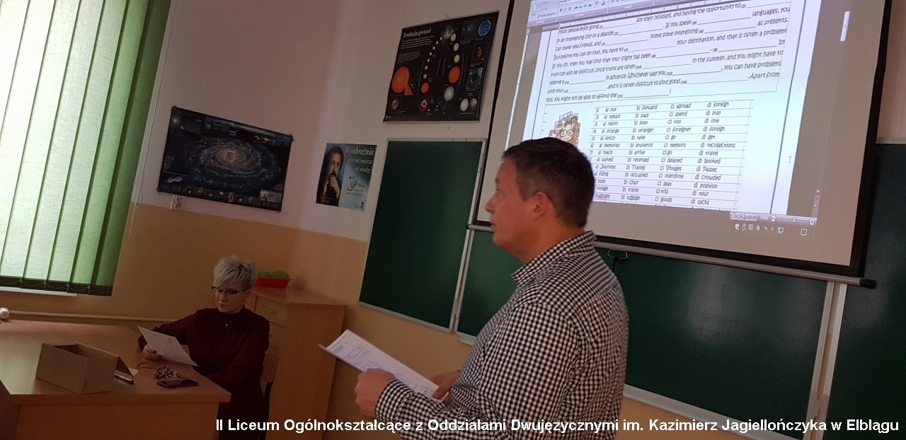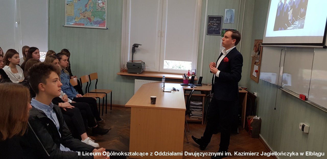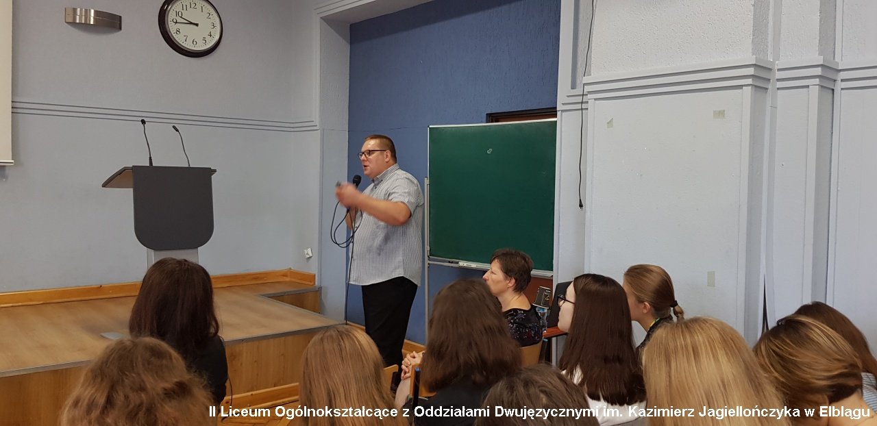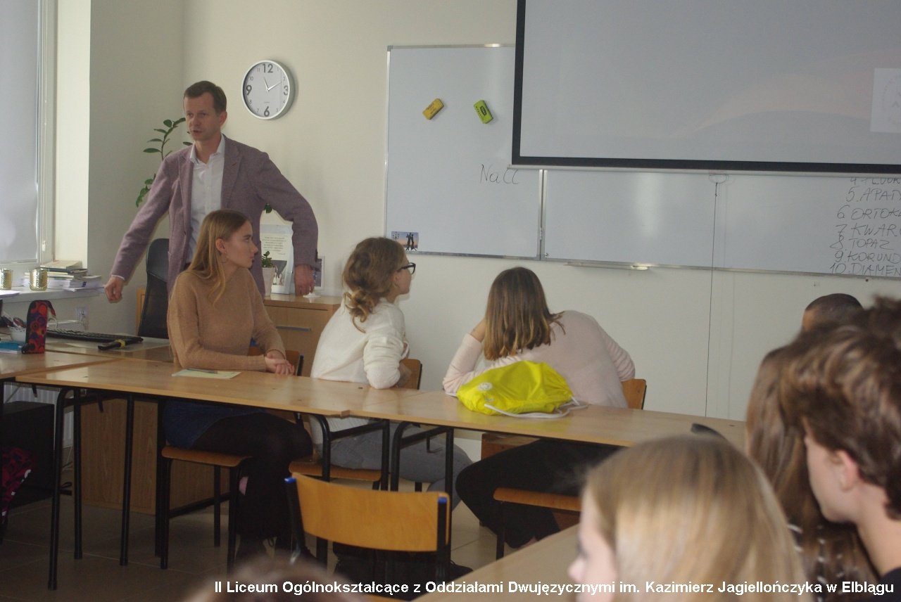 W repertuarze bogatej oferty znalazły się zajęcia w języku angielskim pt. „Podróże i języki obce” mgr Arco van Ieperen. Zajęcia z wykładowcą PWSZ rozpoczęły się od rozgrzewki językowej polegającej na odpowiadaniu na pytania odnośnie form podróżowania i preferencji dotyczących celów podróży i wymarzonych miejsc, które warto odwiedzić. Uczniowie mieli również szanse poszerzyć zakres swojego słownictwa, w odniesieniu do wyżej wspomnianego tematu. Druga część warsztatu związana była z łamańcami językowymi i trudnymi wyrazami w trzech językach: w języku angielskim, niemieckim oraz języku polskim. Okazało się, że zdecydowana większość uczniów miała problem z wymówieniem zaproponowanych fraz. Powyższe zadanie przysporzyło nam wielu wrażeń i świetną zabawą. Co więcej udało, nam się namówić wykładowcę, aby podjął wyzwanie dotyczące polskiego łamańca językowego – nie było mu łatwo, ponieważ z pochodzenia jest Holendrem.