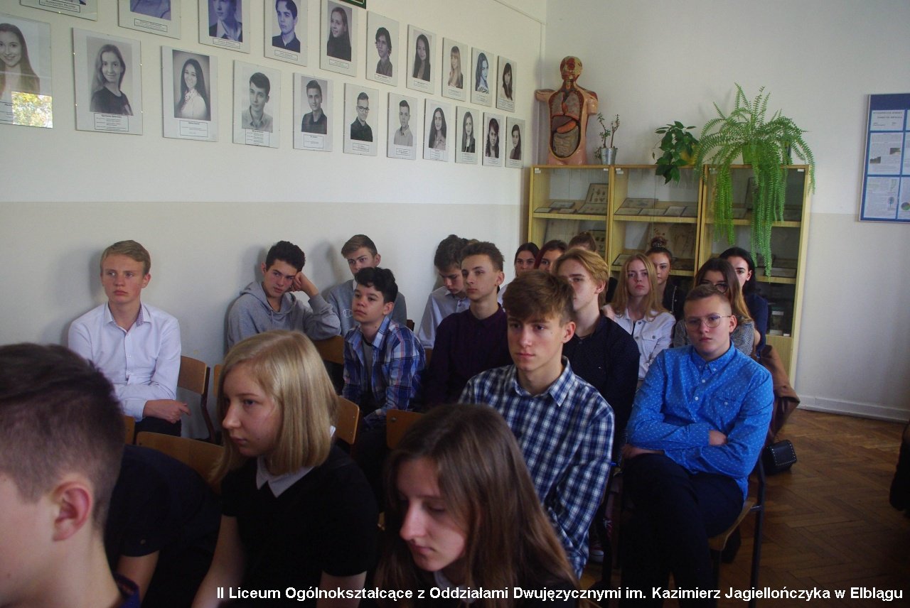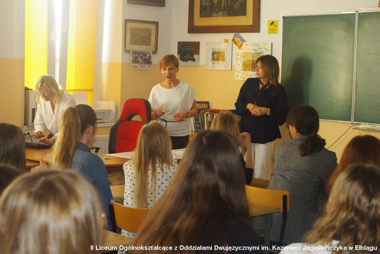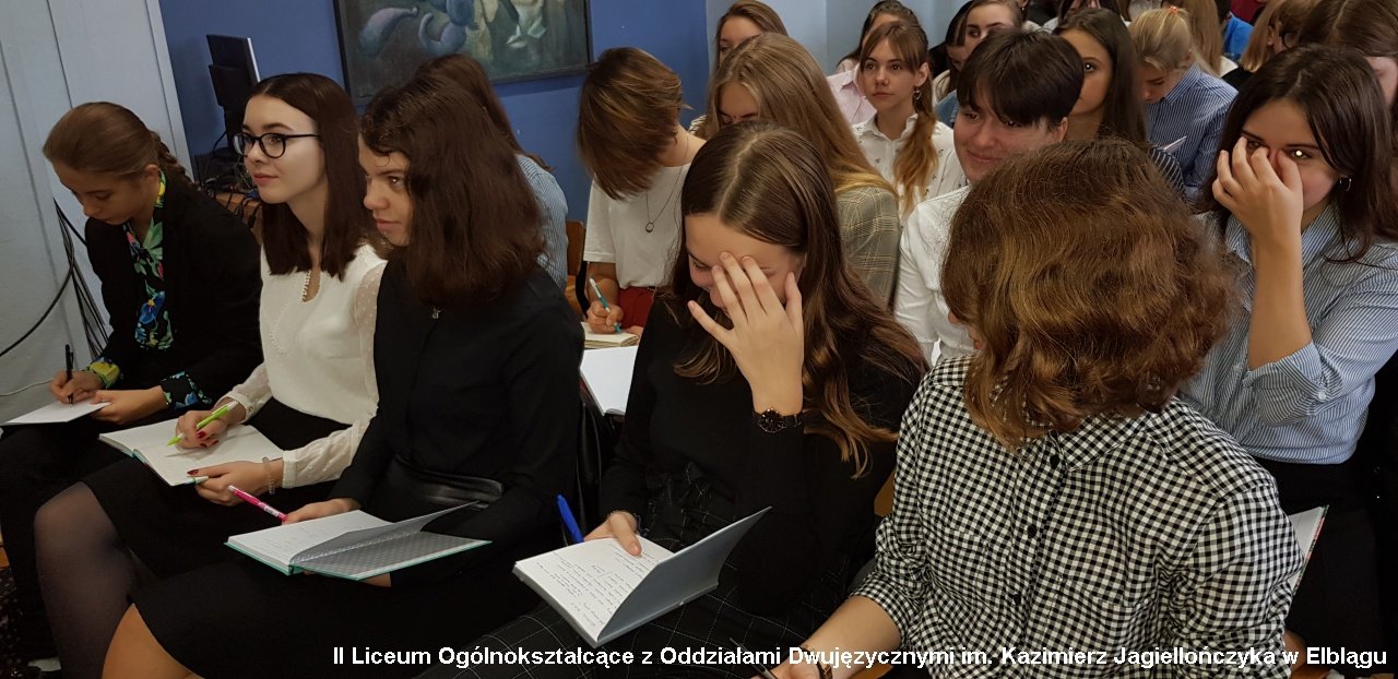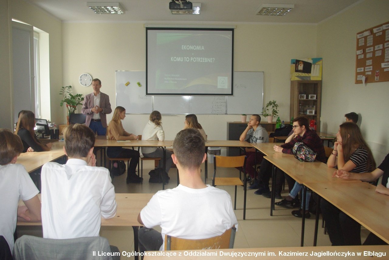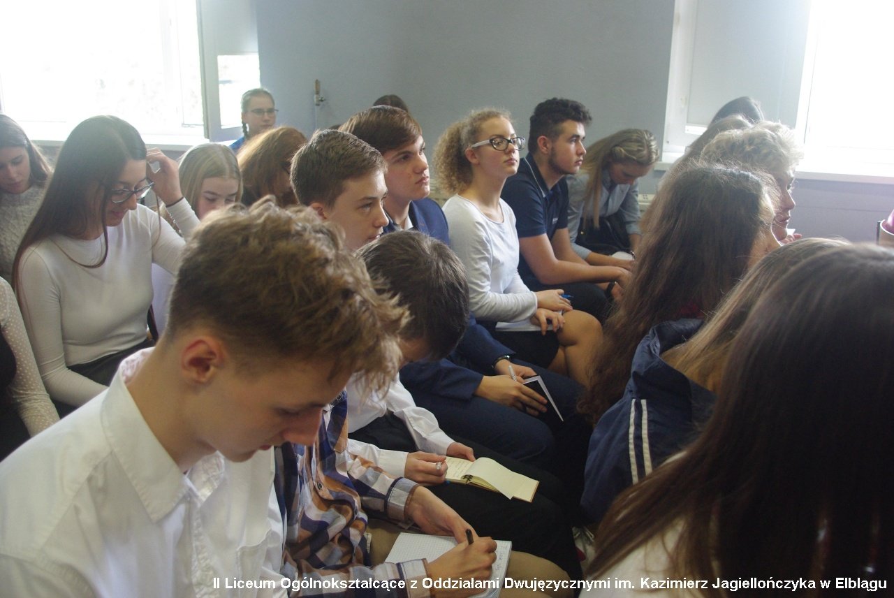 Klasy o profilu humanistycznym rozpoczęły swój blok zajęć wykładem „Wstęp do prawoznawstwa dla licealistów” wygłoszony przez Piotra Zielińskiego z Wydziału Prawa i Administracji UG. Prowadzący zaprezentował charakter studiów, aplikacje, instytucje i dokumenty prawnicze. Wykład wzbudził duże zainteresowanie uczniów, zwłaszcza informacje praktyczne typu: jak napisać testament.