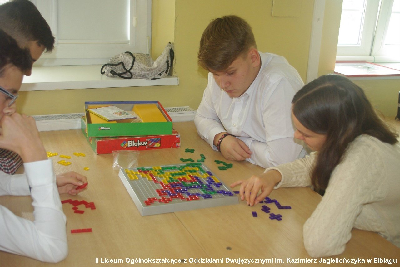 Klasy biznesowe miały okazję przeżyć: „Planszówkowy zawrót głowy”. Podczas zajęć przygotowanych przez Panią Magdalenę Adryjanek uczniowie mogli pograć w kilka najpopularniejszych i najbardziej znanych gier planszowych na świecie: -Rummikub- rewelacyjna gra wymagająca wielowymiarowego myślenia. Sprzedana na całym świecie w kilkudziesięciu milionach egzemplarzy.- Super farmer- gra edukacyjna o fascynującej historii, powstała w czasie II wojny światowej w okupowanej Warszawie. Stworzona przez wybitnego polskiego matematyka profesora Karola Borsuka. Światowy hit. Gra jest popularna w ponad 20 krajach na świecie.- Blokus- piękna graficznie gra, dzięki której można rozwijać wyobraźnię przestrzenną. Grając w te gry uczniowie oprócz tego, że rozwijali umiejętność abstrakcyjnego i logicznego myślenia, ćwiczyli spostrzegawczość, rozwijali wyobraźnię przestrzenną to przede wszystkim miło spędzili czas i świetnie się bawili.