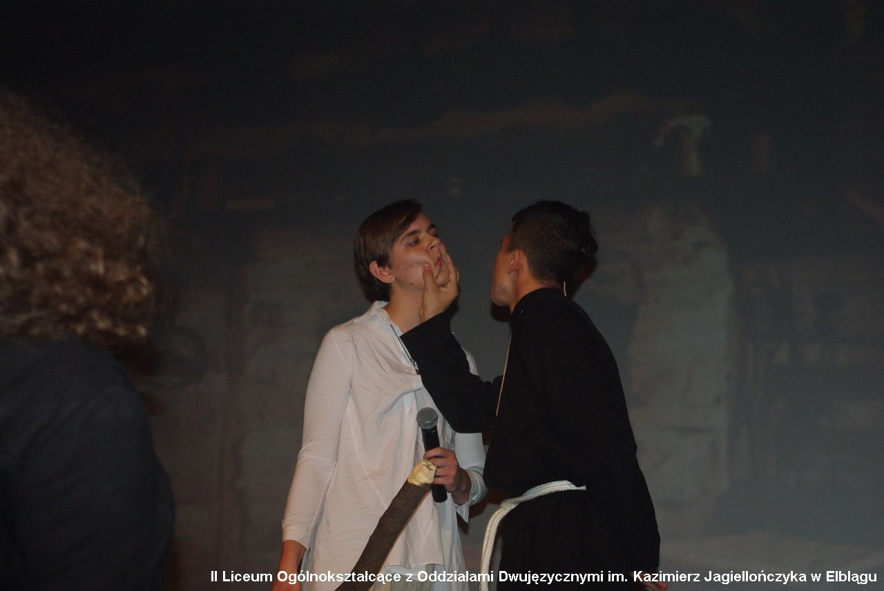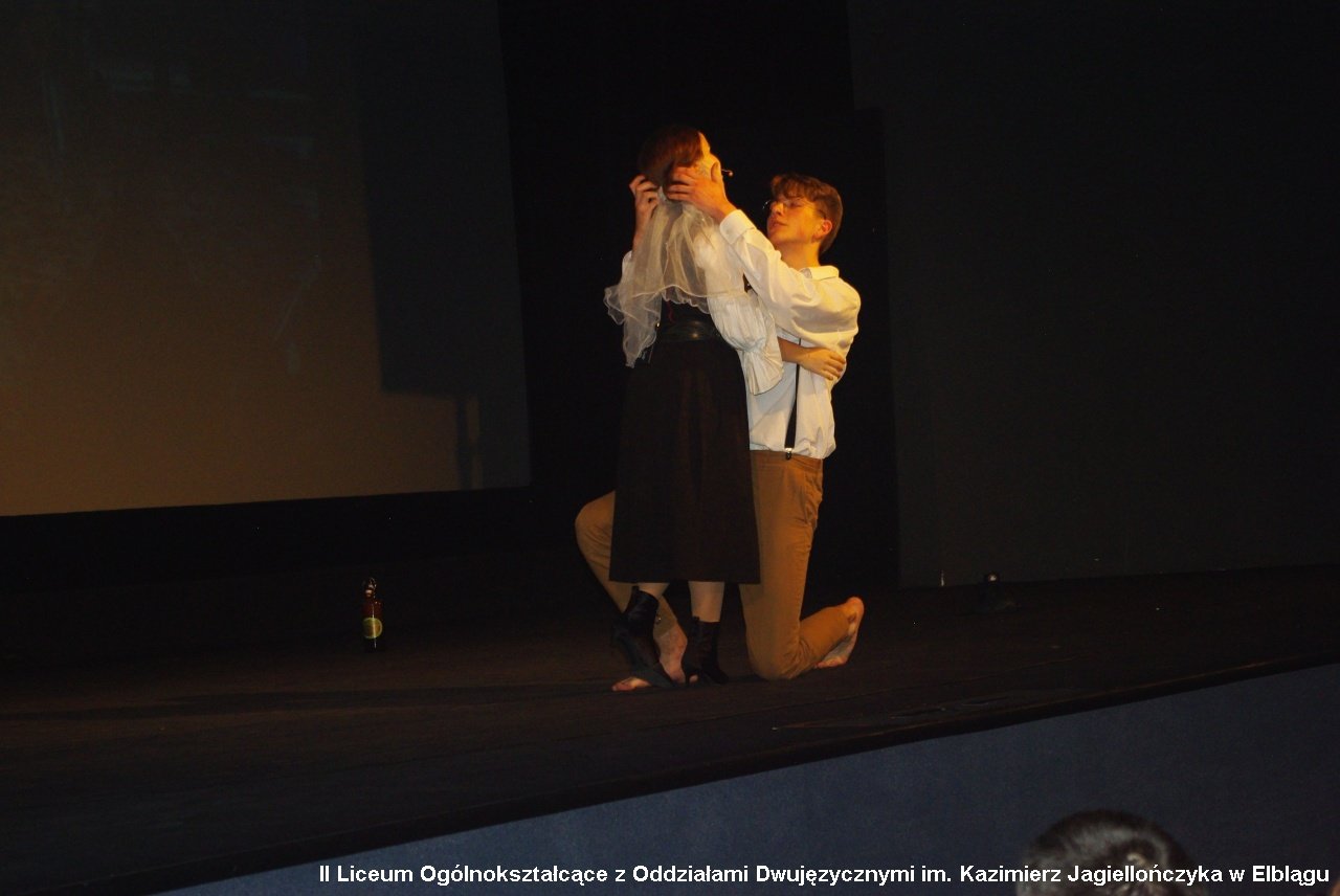 Na zakończenie uroczystości uczta teatralna w wykonaniu uczniów naszej szkoły, czyli przedstawienie pt.”Potyczki miłosne” w reżyserii pań Iwony Studzińskiej i Anny Piwowarskiej. Brawa dla wszystkich.