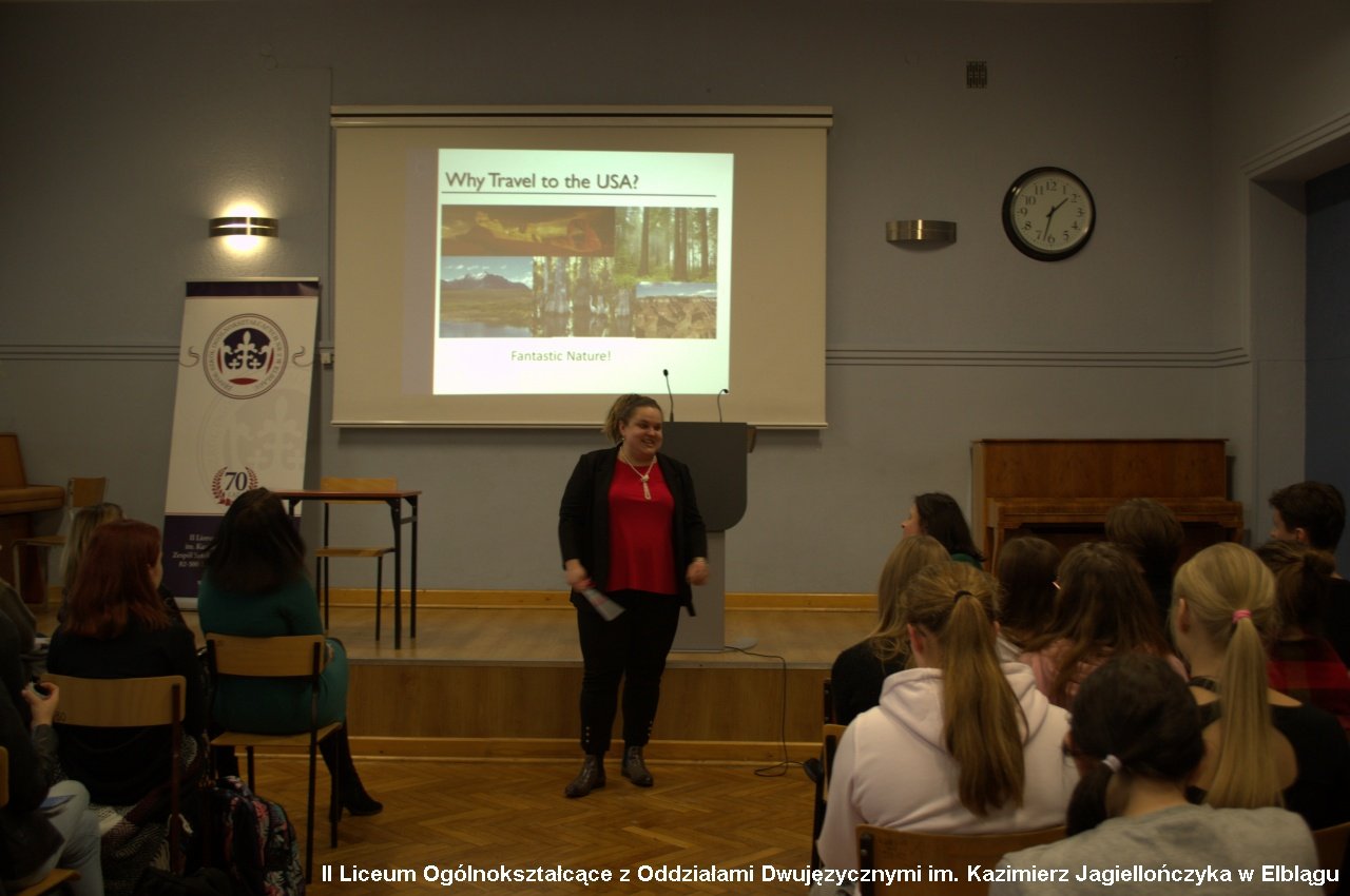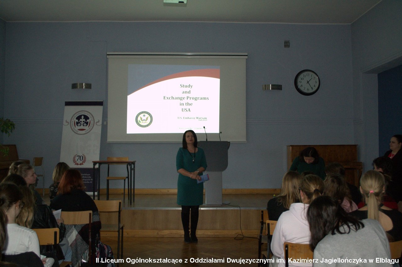 Ambasada Stanów Zjednoczonych w Warszawie, Camp Counselors USA-Poland - partner Departamentu Stanu - zorganizowała w naszej szkole spotkanie z panią Konsul Verą Partem. Omówiono na nim trzy tematy istotne dla uczniów oraz wszystkich zainteresowanych wyjazdami do USA:
