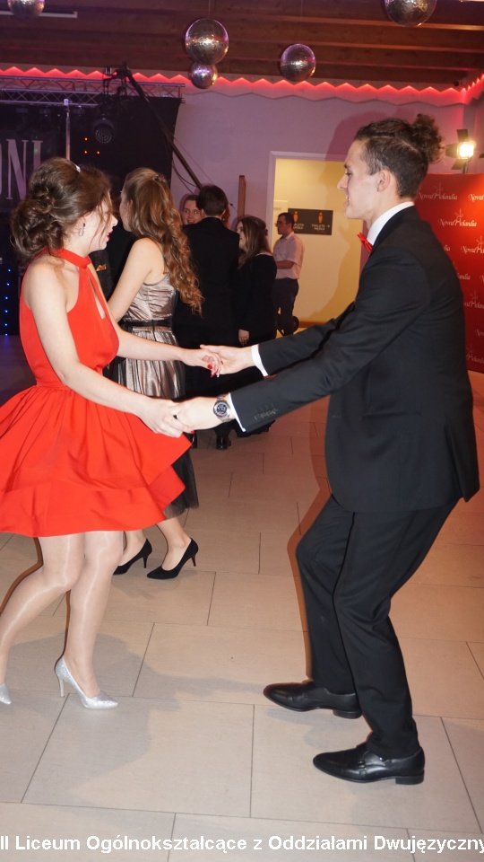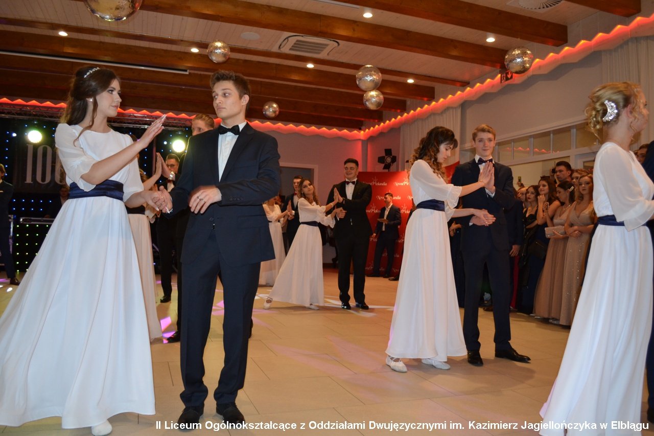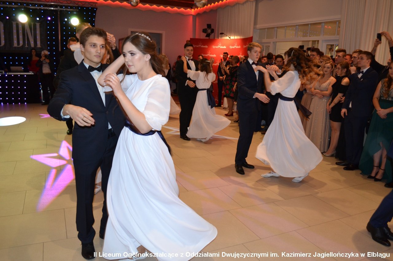 Uroczystość rozpoczęli uczniowie, witając uczestników balu, nauczycieli, rodziców. Potem uczta dla oka - polonez, a po nim niespodzianka – pokaz walca. Tego jeszcze nie było! Układ taneczny został przygotowany pod kierunkiem pani Edyty Beńko - mamy naszej uczennicy. Dziękujemy za wspaniałe doznania.
