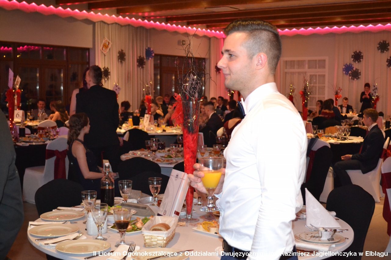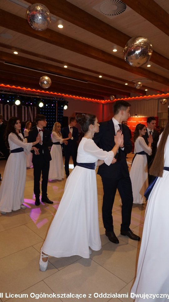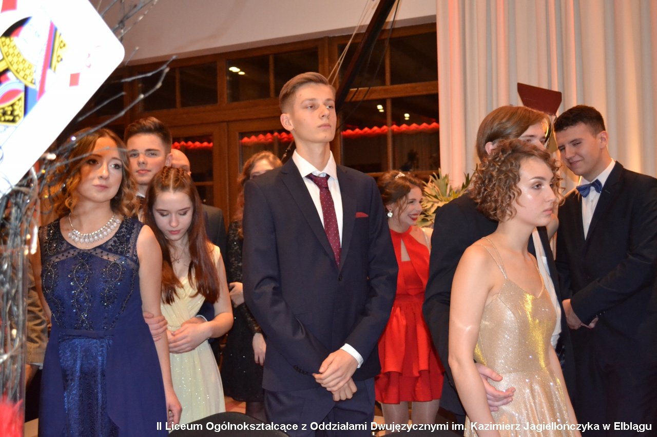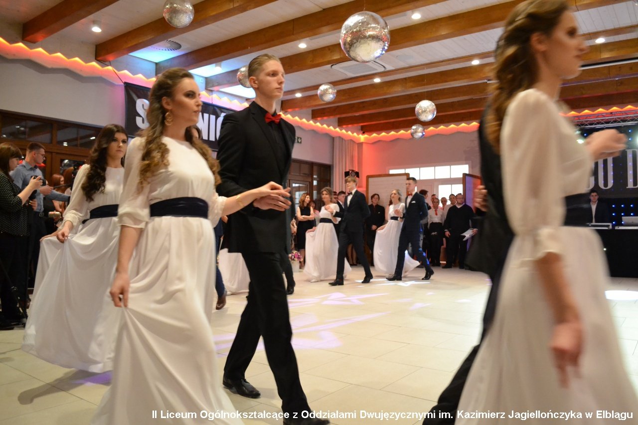 Uroczystość rozpoczęli uczniowie, witając uczestników balu, nauczycieli, rodziców. Potem uczta dla oka - polonez, a po nim niespodzianka – pokaz walca. Tego jeszcze nie było! Układ taneczny został przygotowany pod kierunkiem pani Edyty Beńko - mamy naszej uczennicy. Dziękujemy za wspaniałe doznania.