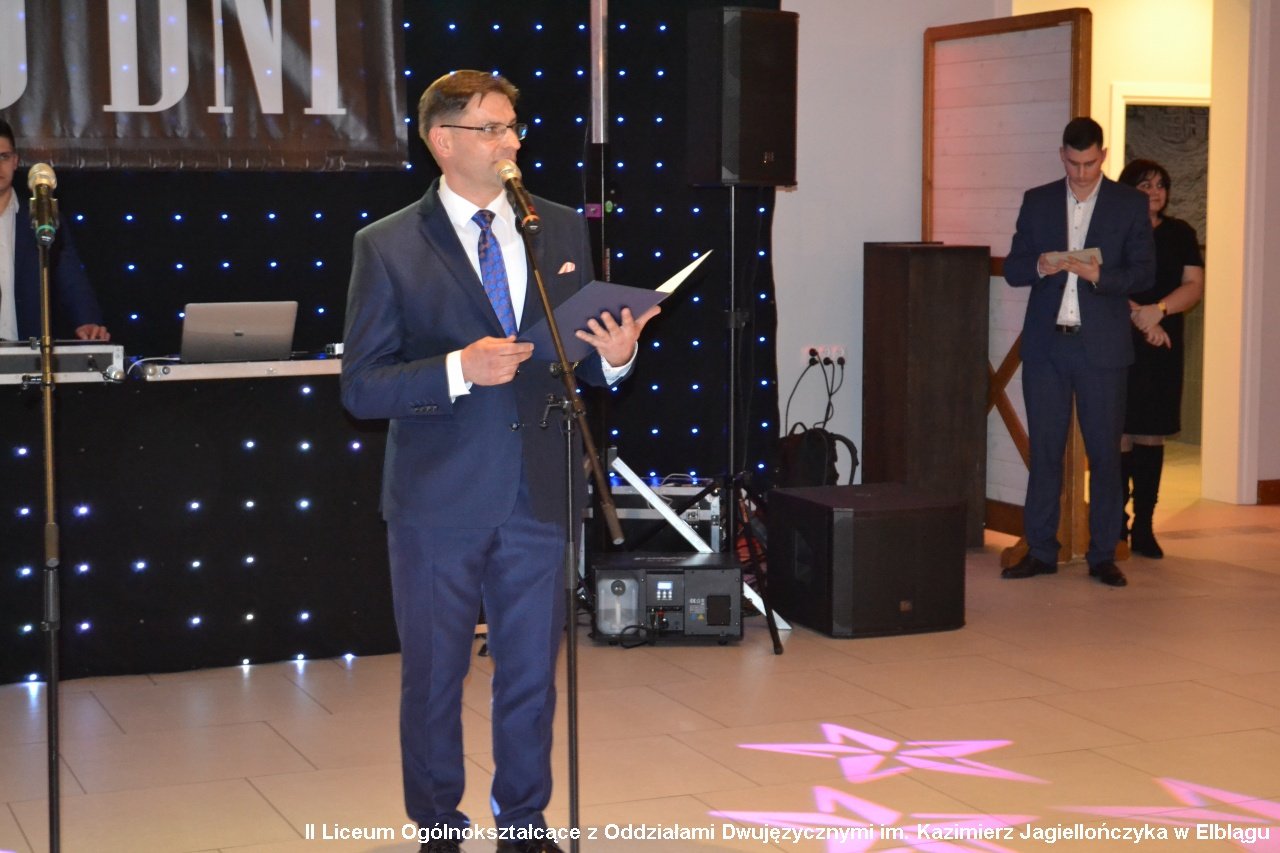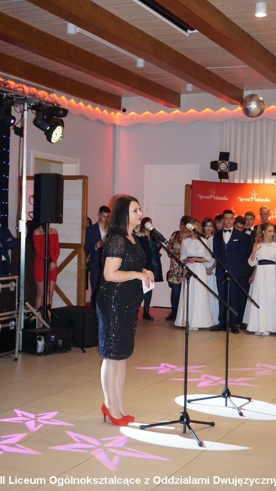 „Dziś przed wami pierwszy dorosły bal, dorosły, ale w obecności dobrze wam znanych i lubianych nauczycieli. Możemy tutaj być wszyscy razem. To odliczanie do matury, które dziś się rozpoczyna, chciałabym, abyście zaczęli od bardzo dobrzej zabawy. Jest powiedzenie, które łączy wyniki matur z szaleństwami studniówkowej nocy. Mówi się "takie matury wyniki poznacie, jakich szaleństw studniówki doznacie". Warto w tym dniu być uśmiechniętym, bawić się i czerpać z tej radosnej chwili jak najwięcej. Niech ta noc będzie dla was pięknym przeżyciem i pozostawi piękne wspomnienia na długie lata”