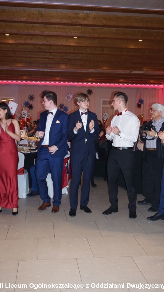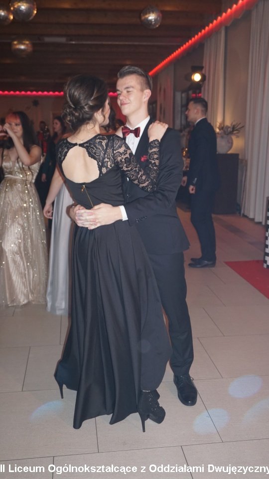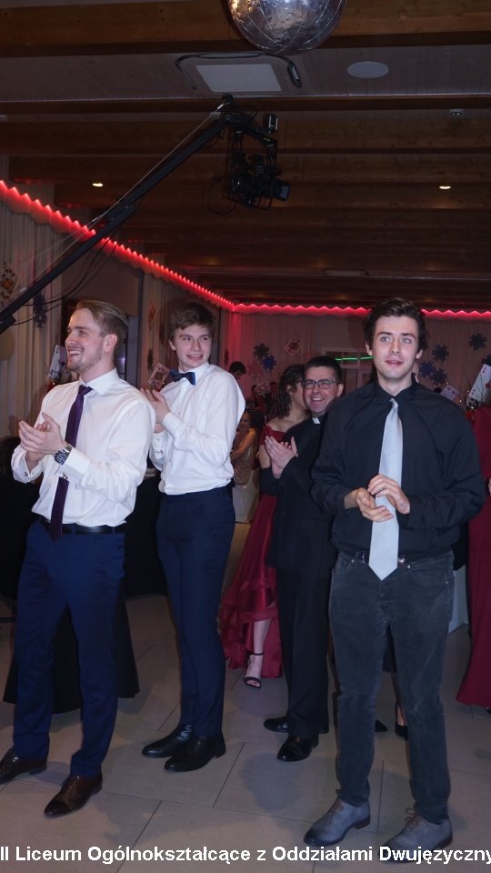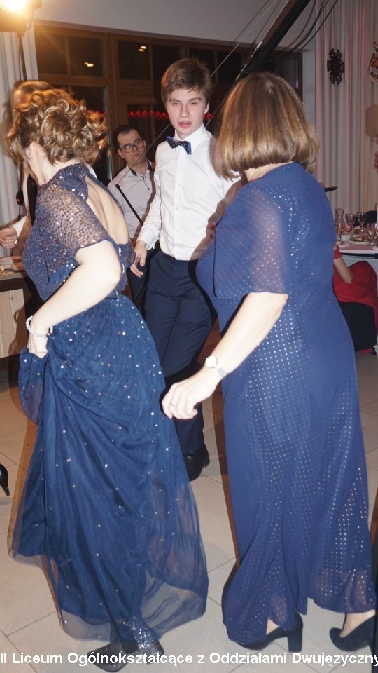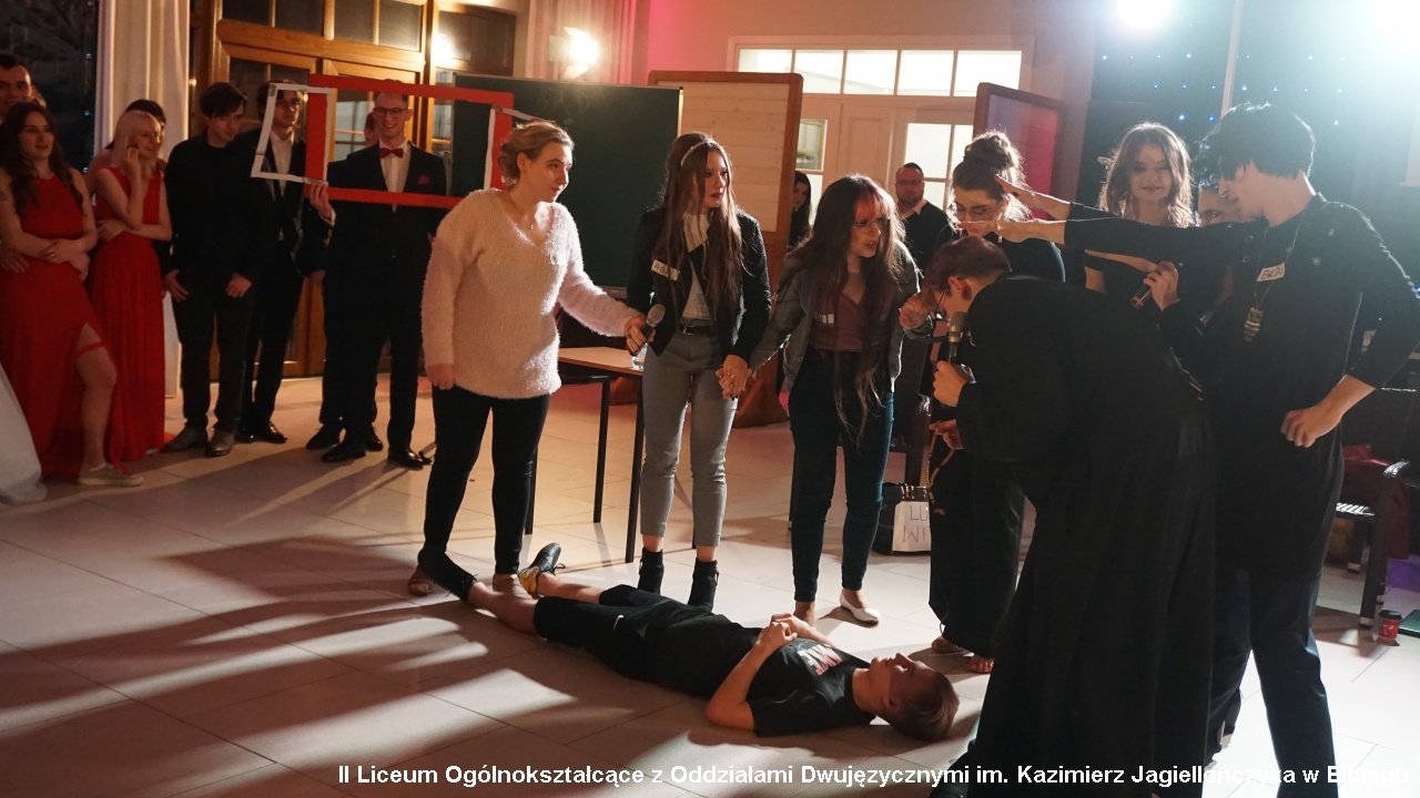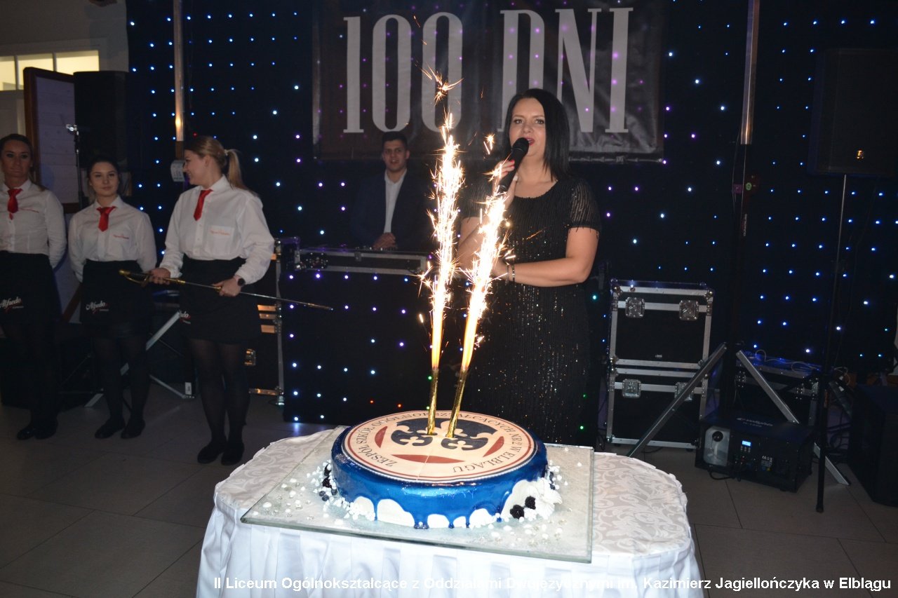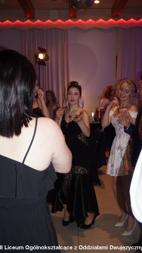 Wspólny taniec przerywały tylko momenty na wspólne fotografie , zabawa przed fotobudką. Porcję dobrego humoru dostarczył kabaret studniówkowy przygotowany pod kierunkiem pana Bogusława Walewskiego. Tradycyjnie, dokładnie o północy, na sali pojawił się wyśmienity tort, którego uroczyście i z rozmachem pokroiła pani dyrektor !