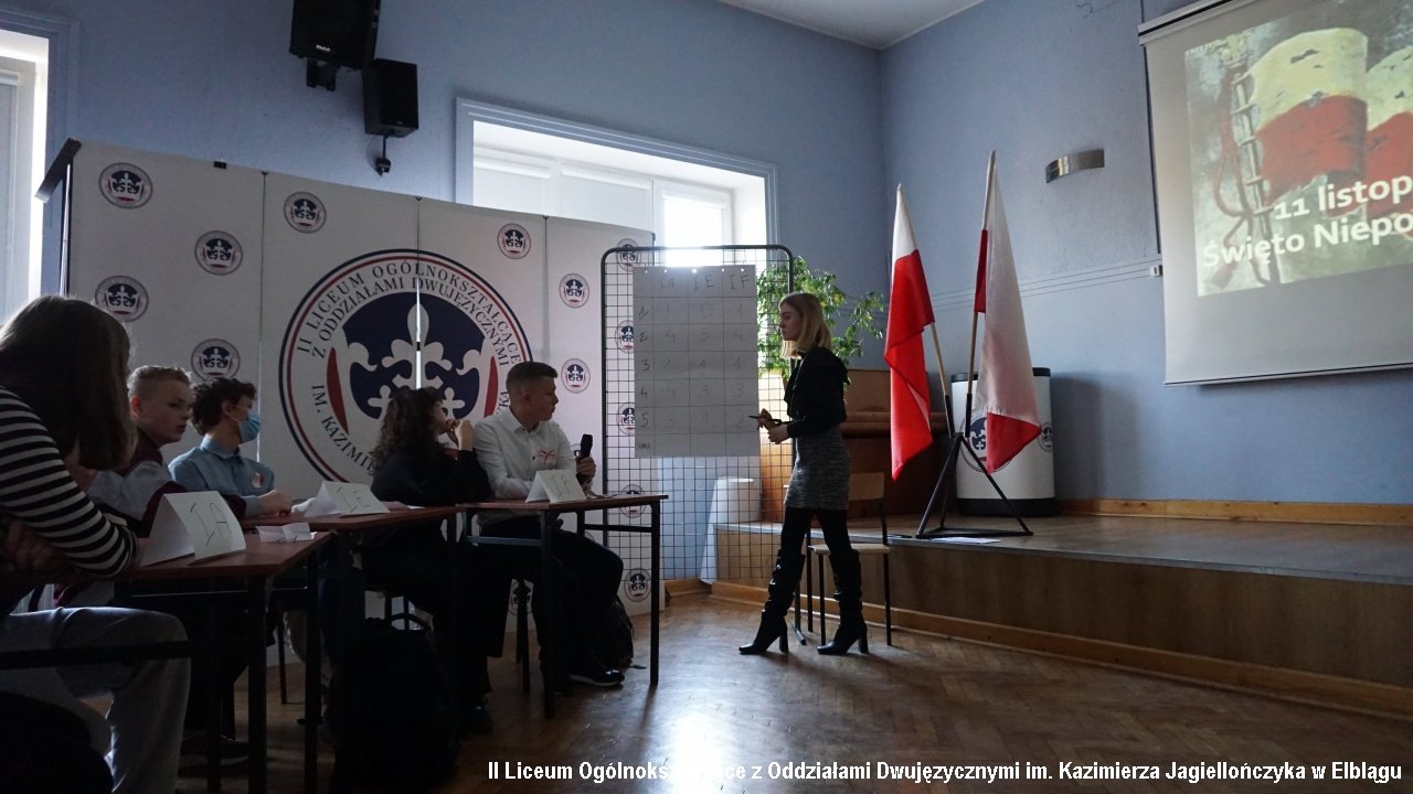Obok turnieju wiedzy odbył się konkurs recytatorski i piosenki patriotycznej. Klasy uczestniczące w konkursie zajęły następujące miejsca:
