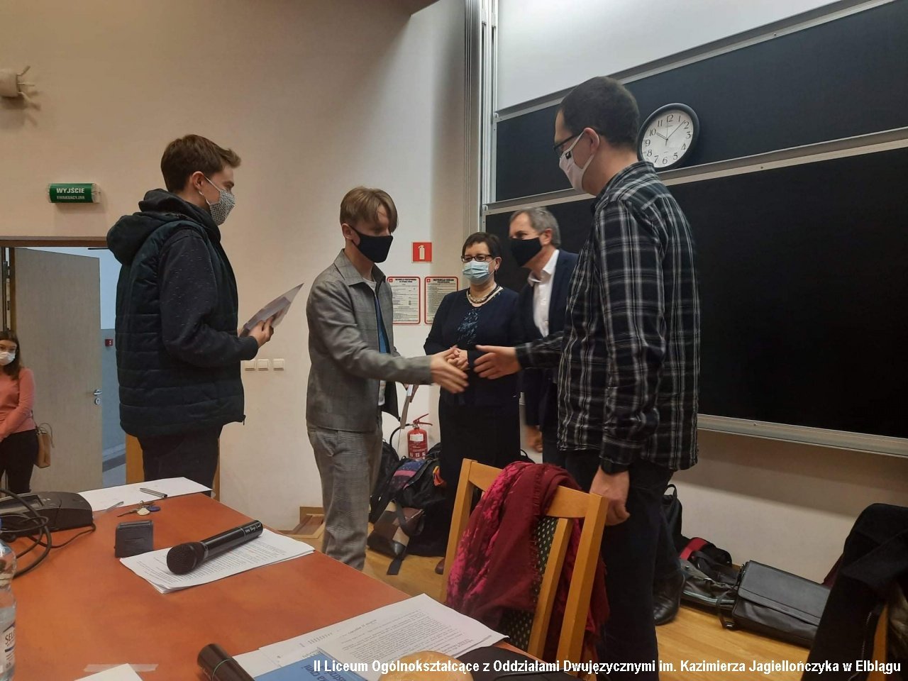 Miło nam poinformować, że uczeń klasy 3eNLO Mikołaj Kacperski otrzymał nagrodę im prof.Leona Jeśmanowicza za najlepiej rozwiązane zadania w zawodach I stopnia LXXIII Olimpiady Matematycznej w okręgu toruńskim.