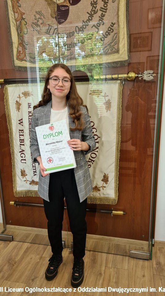 Finał olimpiady "PCK"Opublikowano: 14 czerwiec 2022 | Drukuj W finale Ogólnopolskiej Olimpiady Promocji Zdrowego Stylu Życia wzięła udział Weronika Mazur (uczennica kl. 2c). Jest mi miło poinformować, iż Weronika zajęła 7. miejsce w Polsce! Gratulacje! oprac. Lidia Nawrocka
