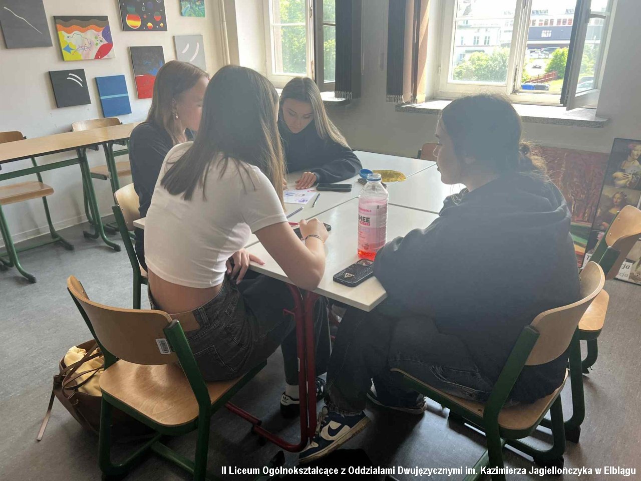 ° uczniowie klasy 3a ( humanistyczna): Livia Iwaniak, Maja Pielech, Laura Van Ieperen, Kinga Szuszek- II miejsce.