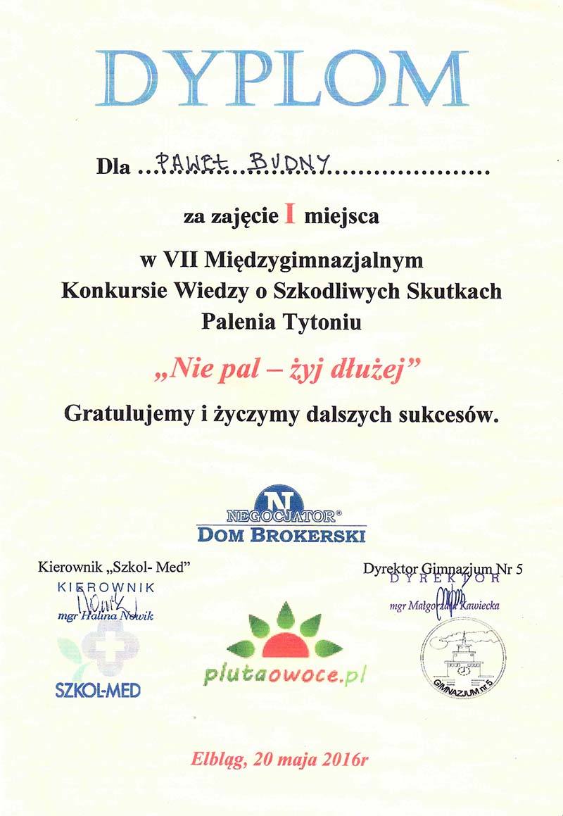 Reprezentacja naszego gimnazjum startowała w konkursie międzygimnazjalnym "Nie pal-żyj dłużej" w składzie :